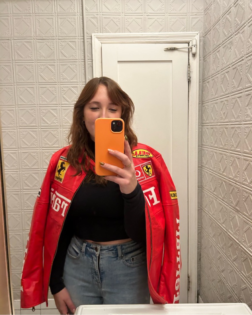 This new red leather jacket is a great statement piece on any F1 Grand Prix weekend or a cool evening out. Whether your vision is an over the shoulder pop of color or a proper jacket to wear — you won’t go wrong with this one.