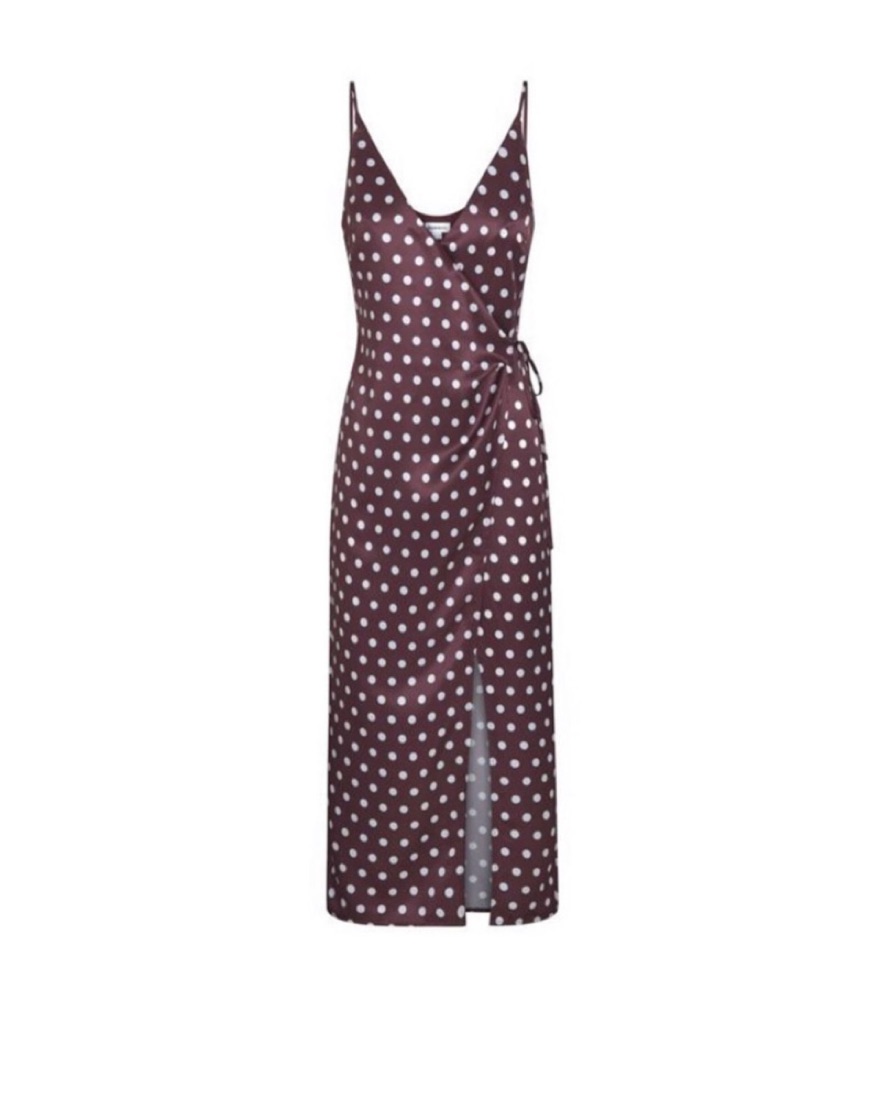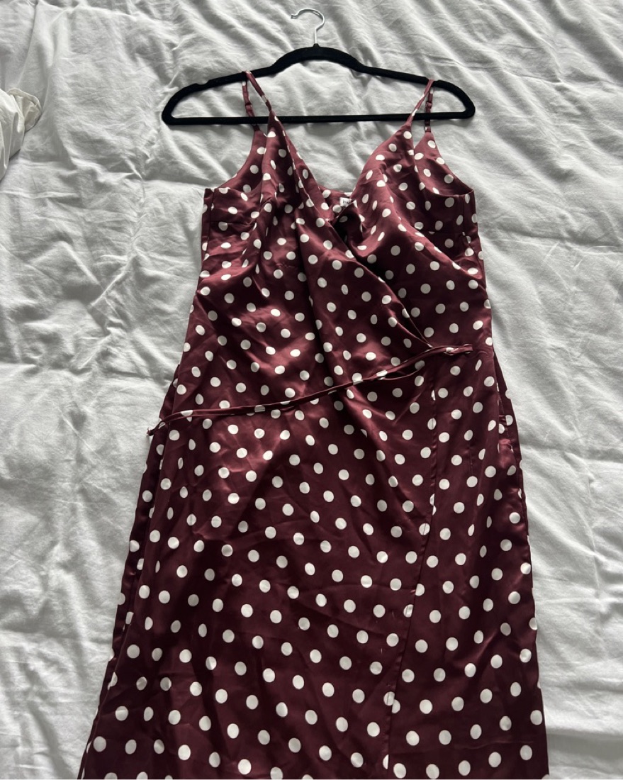 Super cute maroon polka dot dress with slit