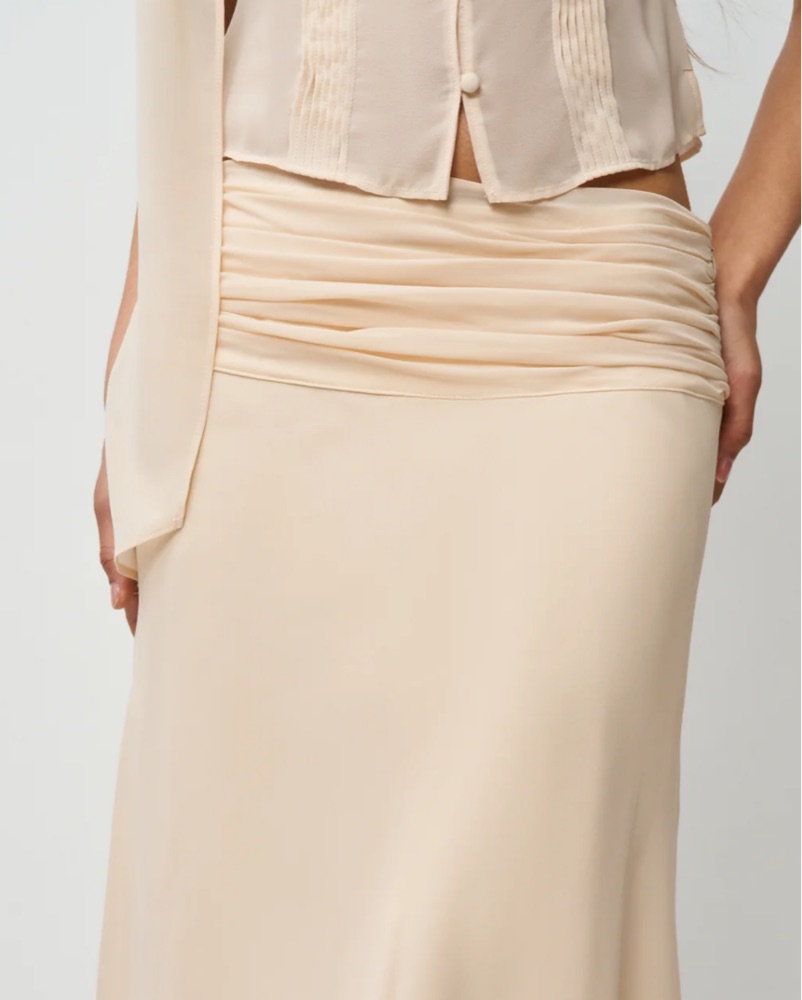 Top is XS and skirt is S in cream colour