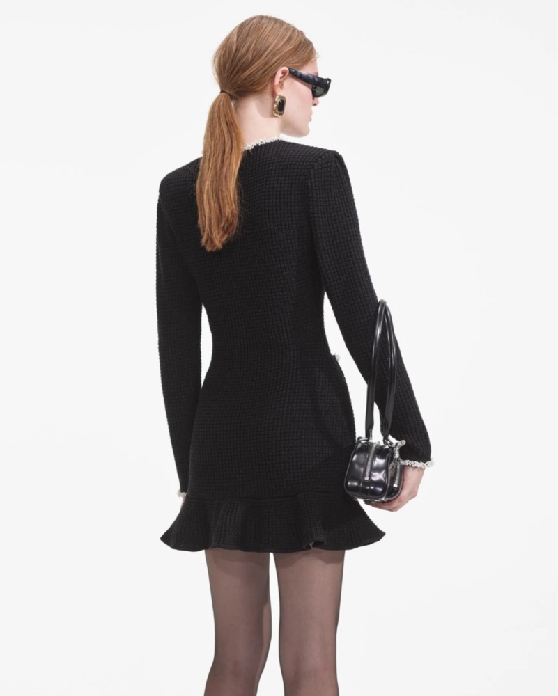 Black pearl trim knit mini dress, worn once- perfect for holiday party or nye!