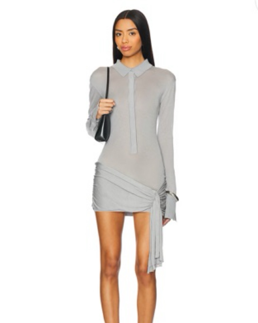 Lightweight fabrication - Collared neckline - Long sleeves - Button-up front - Mini length