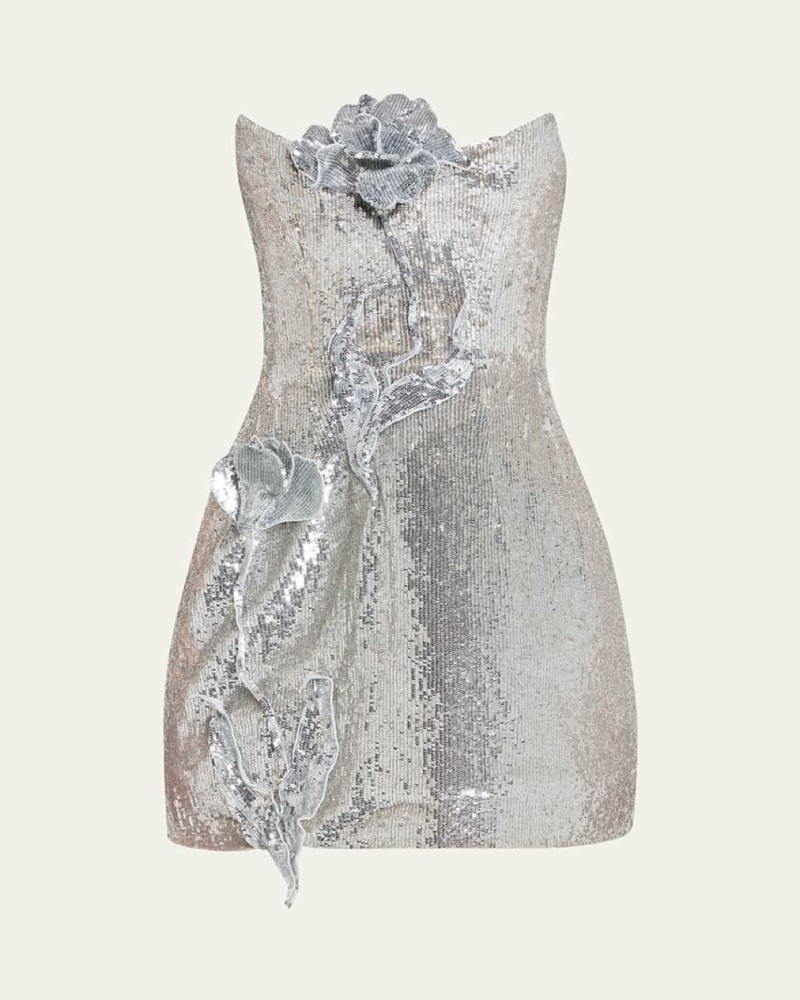 Renting my silver sequin Oscar De La Renta Mini Dress in a size XS originally a 8 tailored to fit a size 0-2 XS perfect after party dress for your wedding worn once to the after party of my wedding perfect silver sequin mini dress
