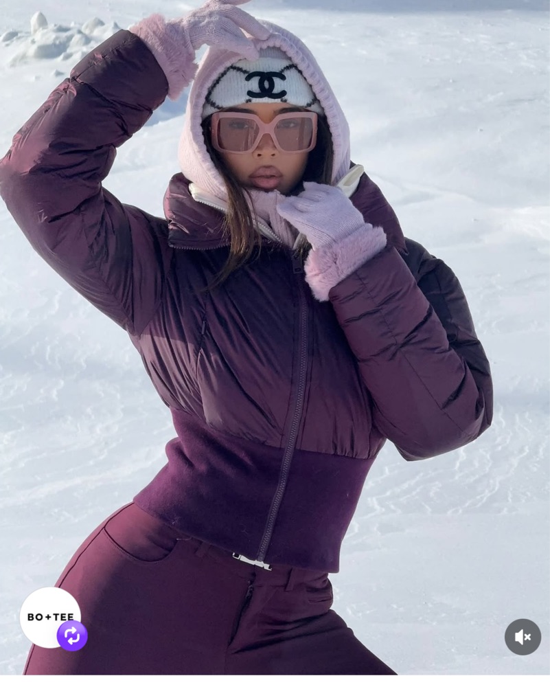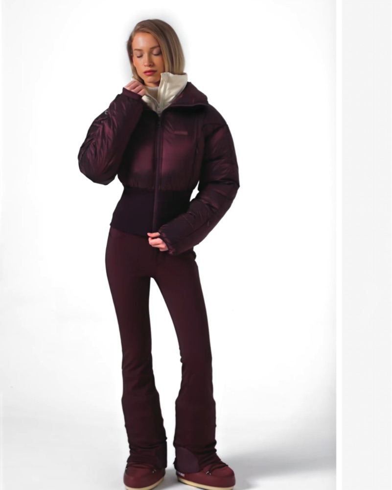 Size small from their 2025-2026 ski season release. Color is BEAUTIFUL . Waist on the pants are 25-25.5 inches with limited stretch- so I say they run on the smaller end .