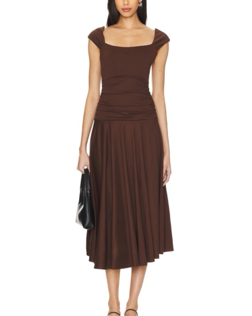 LPA chocolate brown midi dress from Revolve!Quality material. Fully lined. Great for wedding guest, rehearsal dun, family dinner, date night, party, cocktail etc. Size extra small, XS, 0/2/4