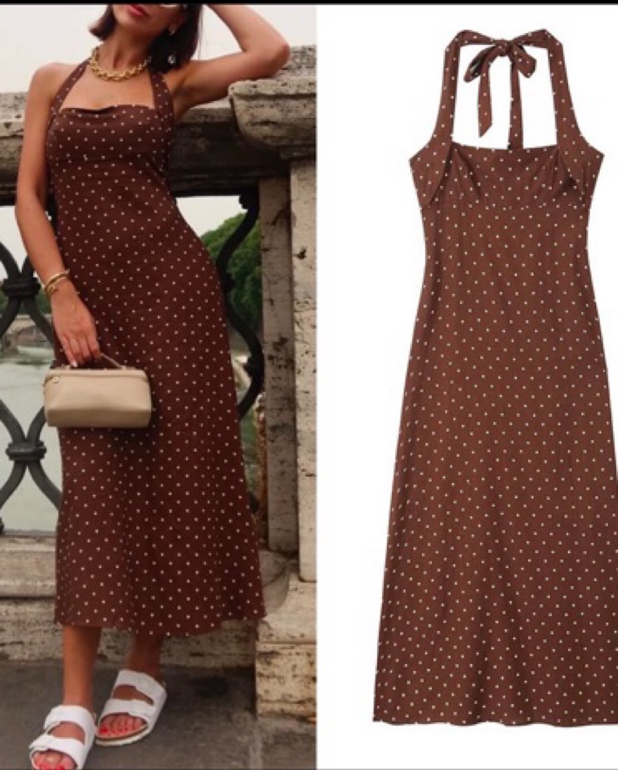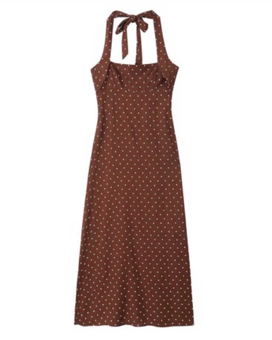 Brown Polka Dot Halter Midi Dress by Zara - Pickle
