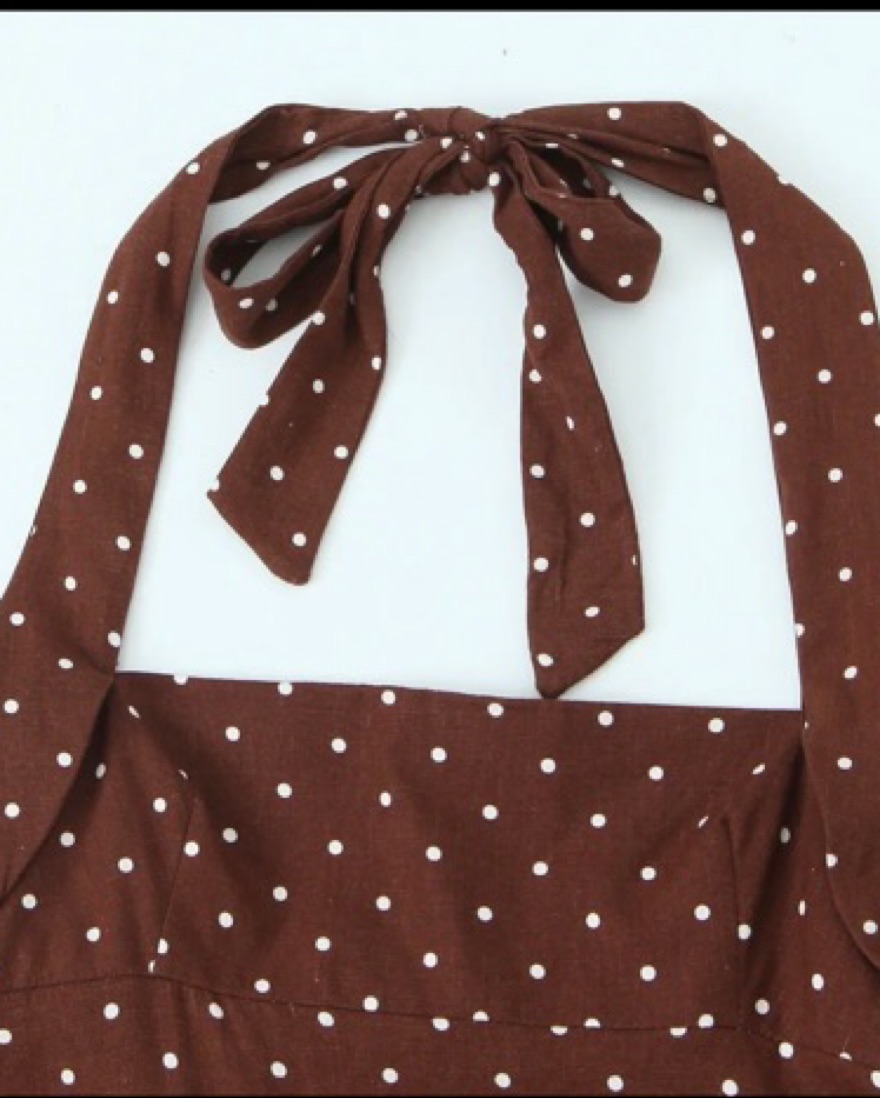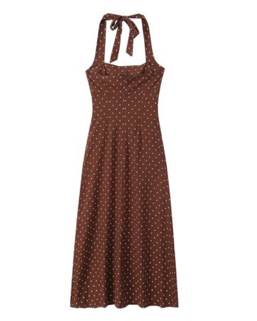 Brown Polka Dot Halter Midi Dress