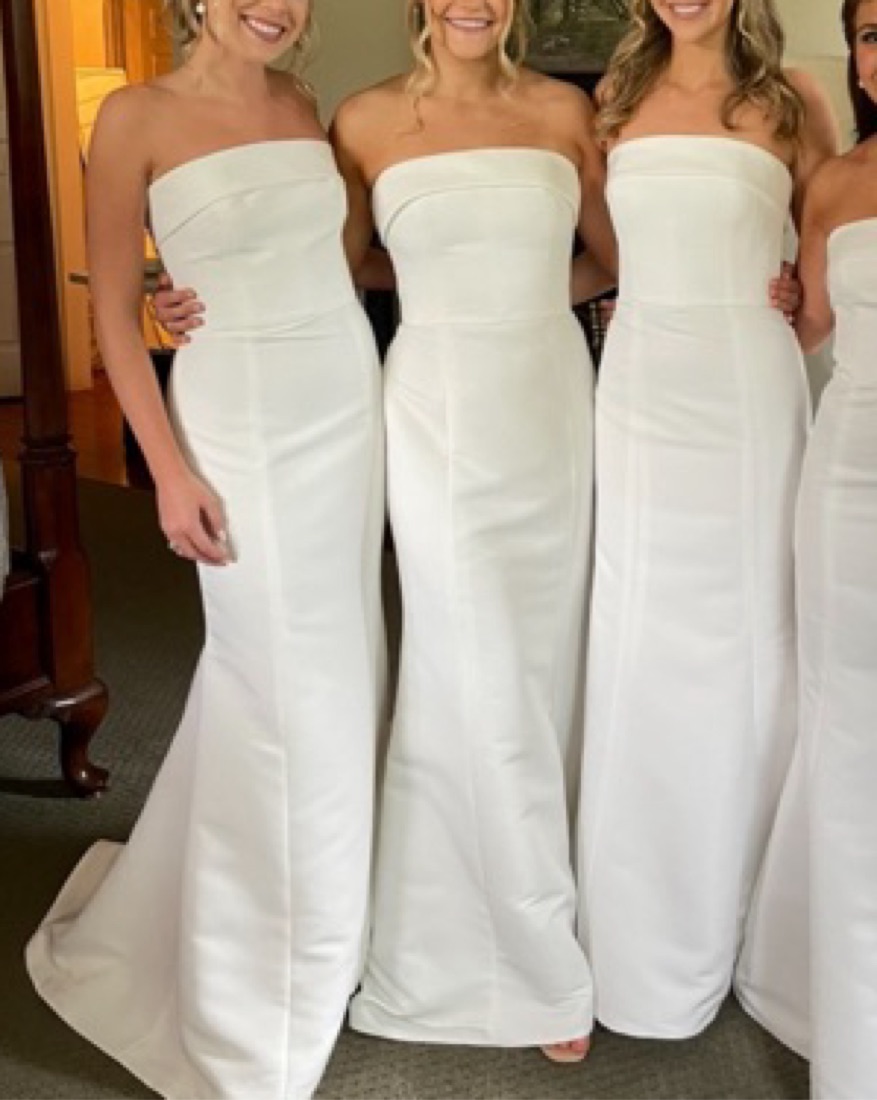 Ordered in Amsale size 4, altered to fit size 2 Color on Amsale is called “Ivory” but is pretty stark white Dry cleaned after wearing, worn only once