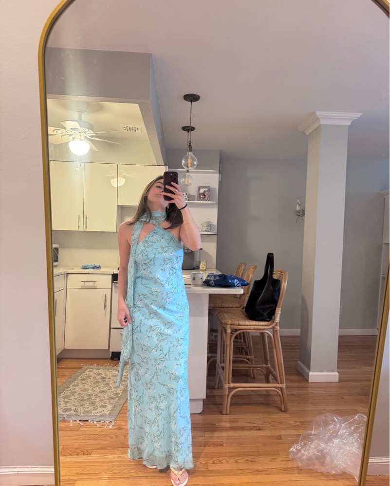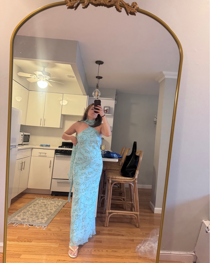 Worn once, very slightly hemmed - perfect for someone < 5 foot 4!!!! So comfy and the top straps are adjustable. Size small