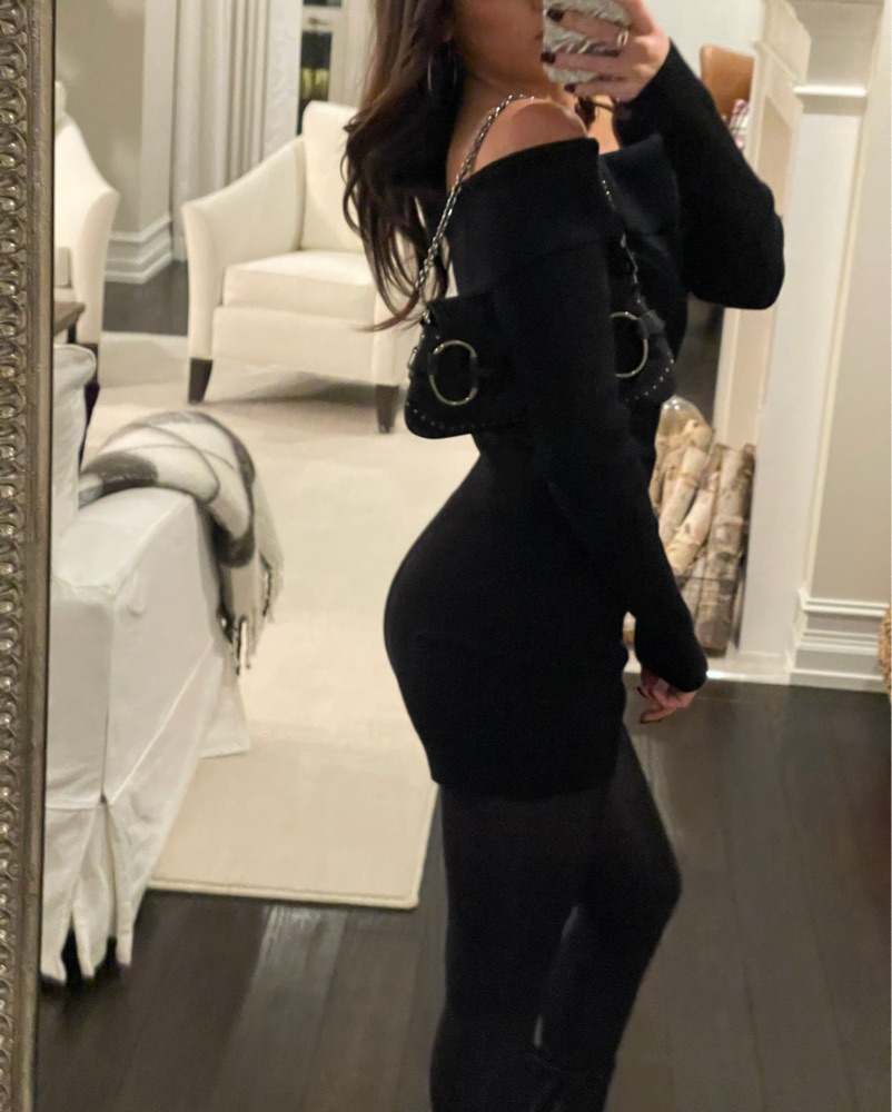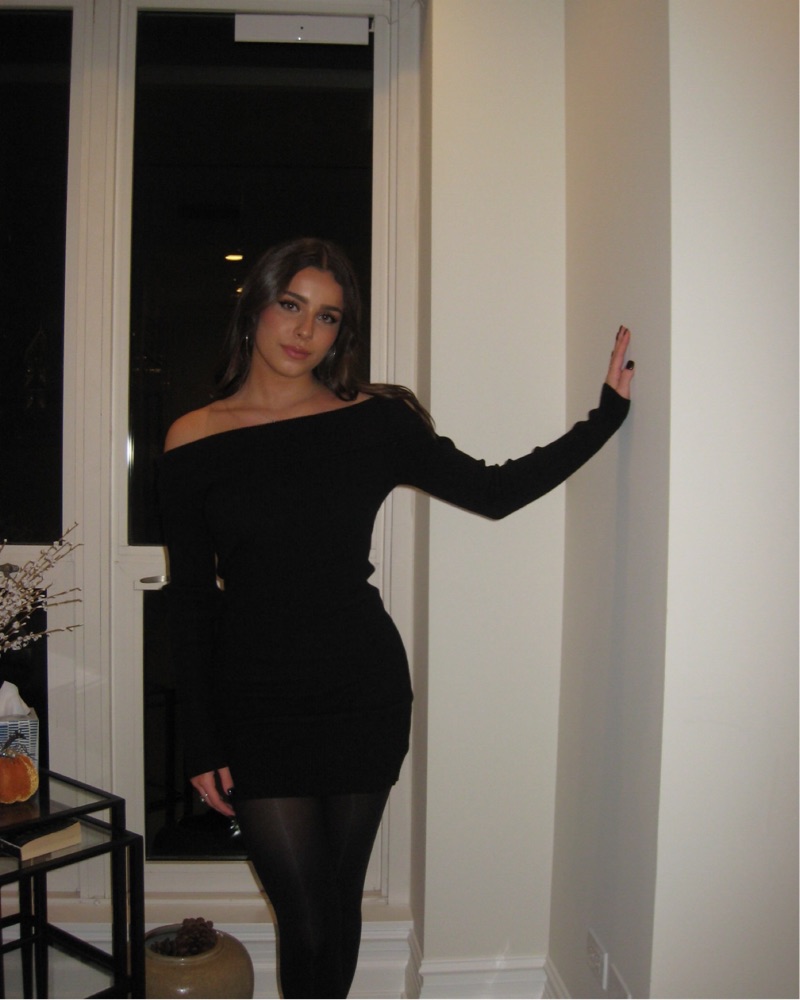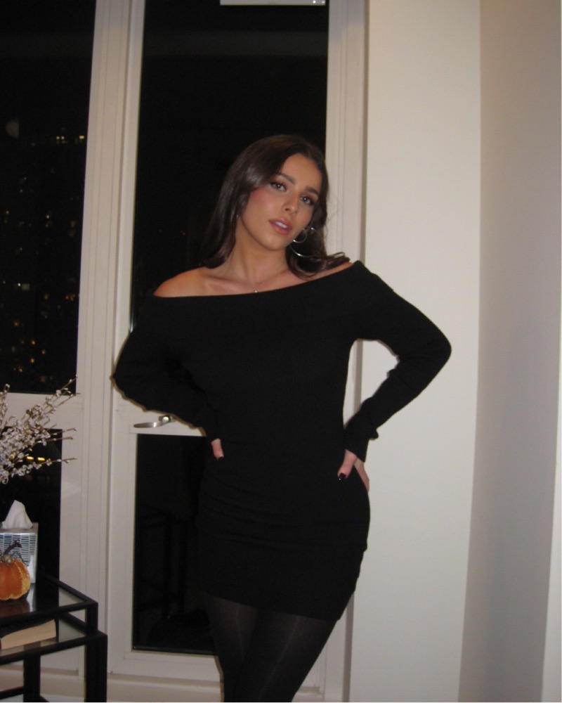 Black edikted off the shoulder dress. Super form fitting and flattering. Long sleeve and keeps you warm. Perfect w tights for a night out