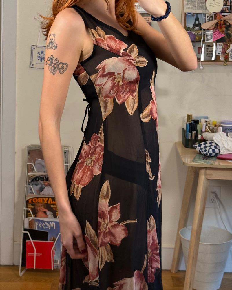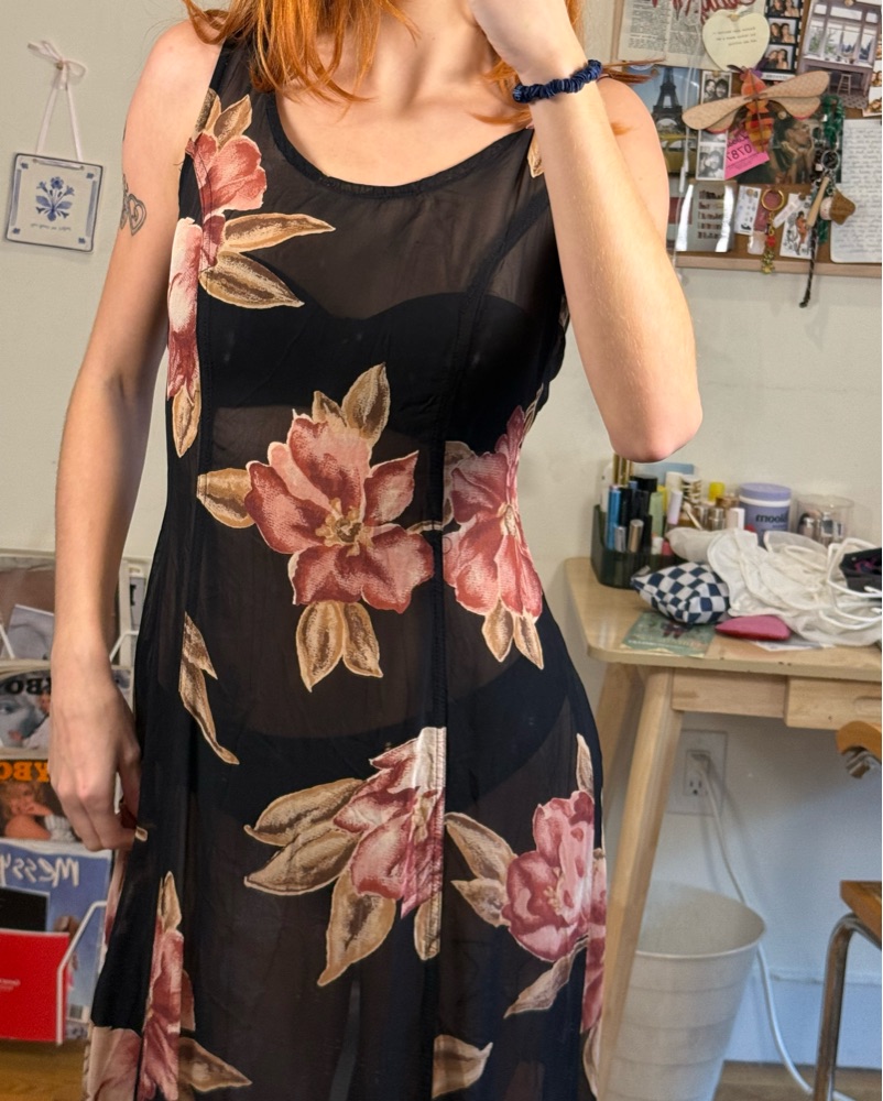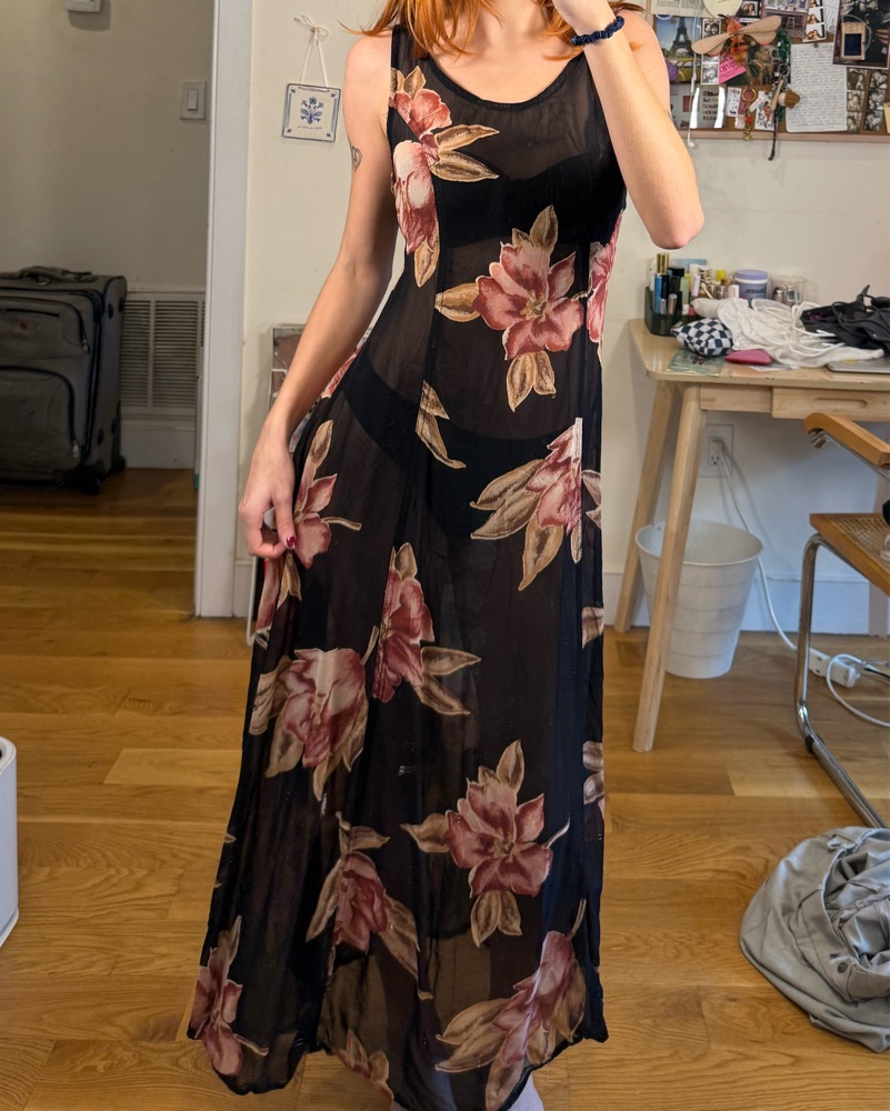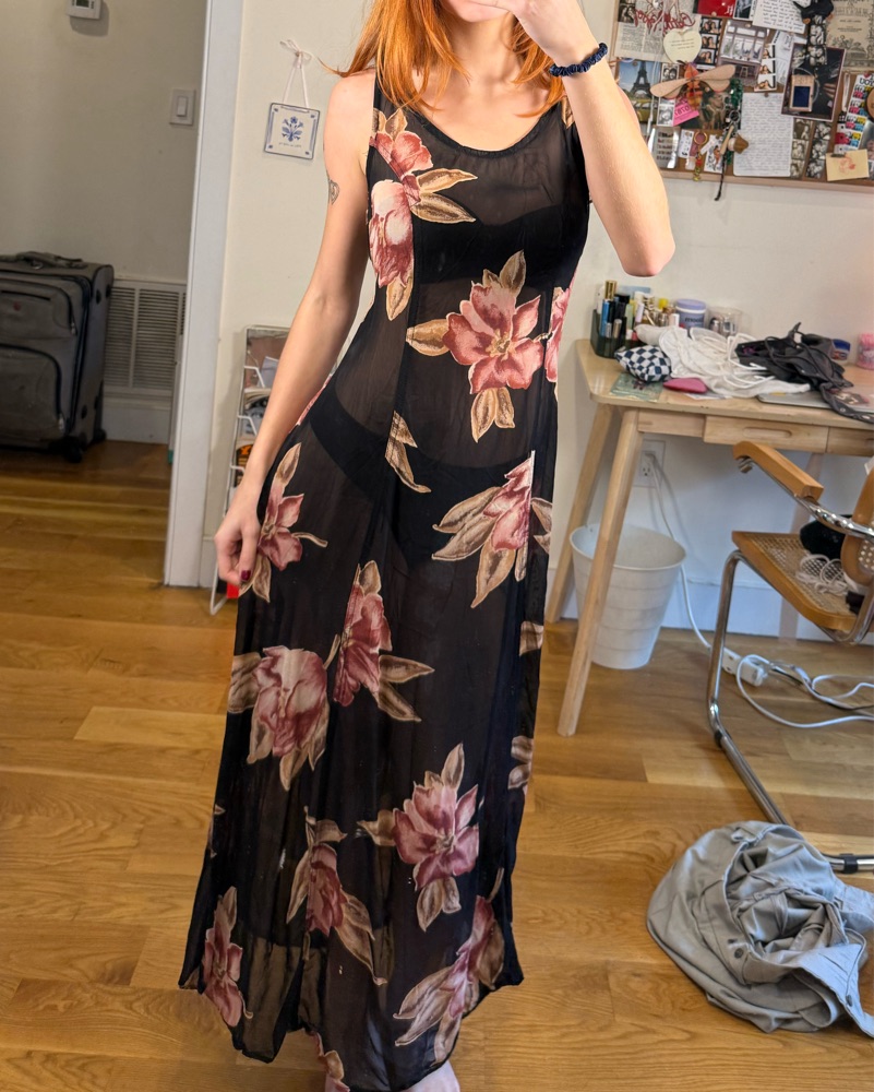 This stunning floral maxi dress is perfect for a special occasion. The flowing silhouette and striking floral pattern create a sophisticated and feminine look.