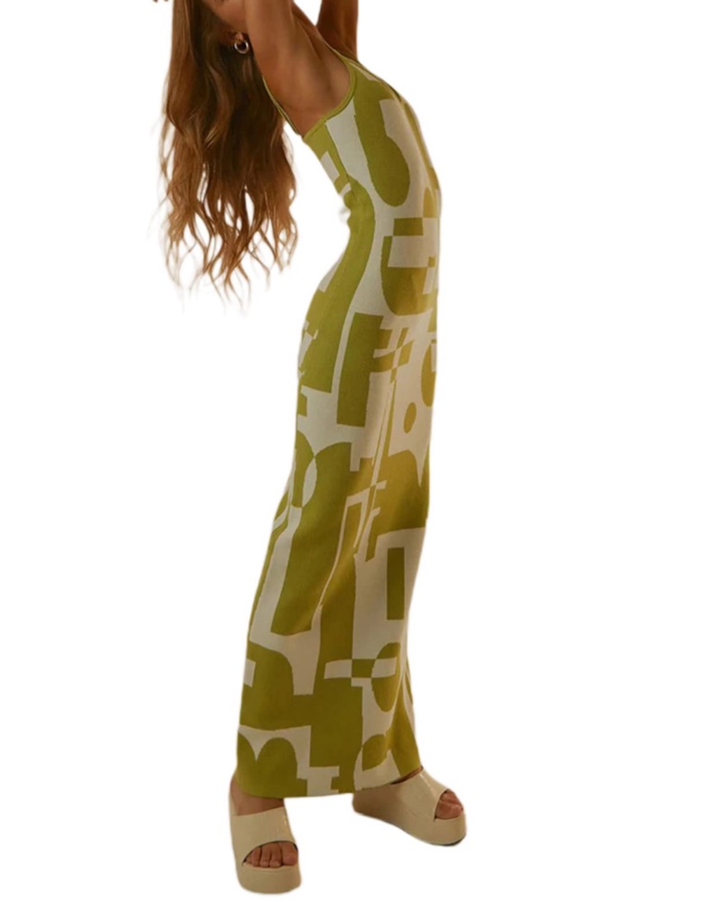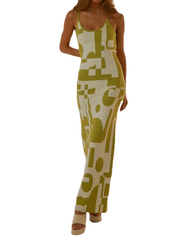 Green And White Knit Maxi Dress by Peppermayo - Pickle