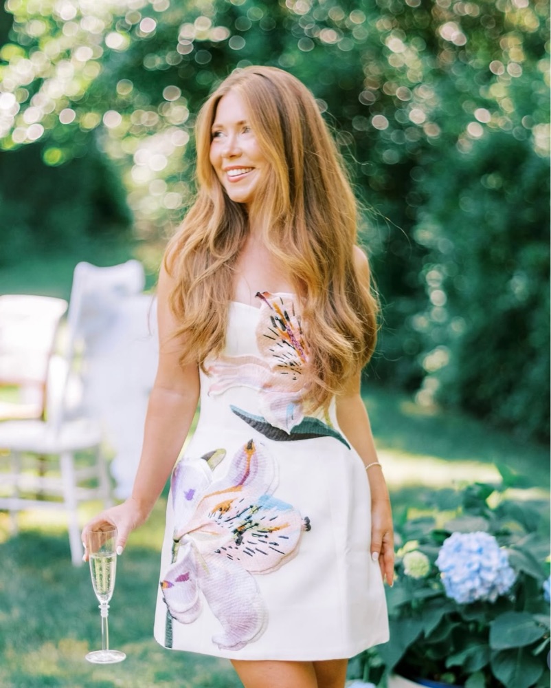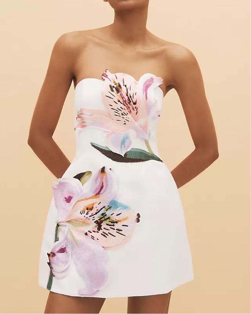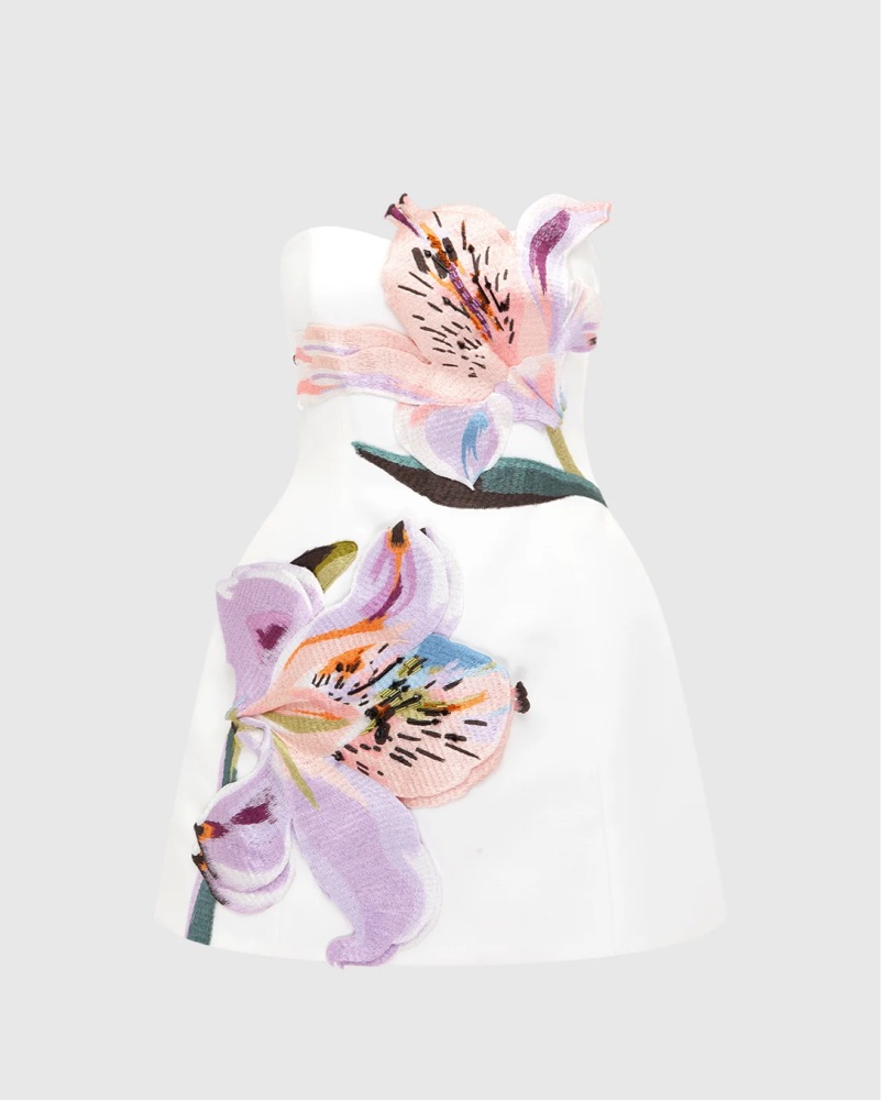 Leo Lin Rosario Appliqué Floral Bustier Mini Dress - Lily Print in Snow
