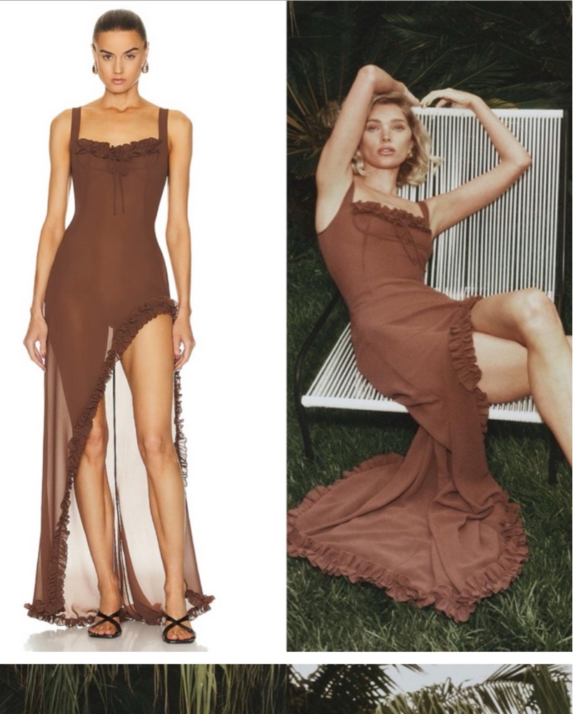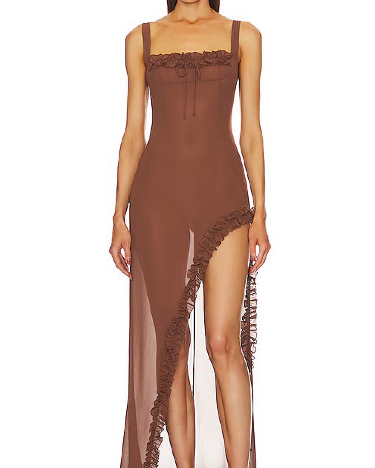 Beautiful helsa brown sheer dress in a size medium. Please note that this is sheer and I wore this with a brown slip under. It is beautiful and has a very slight train. This has slight stretch to it