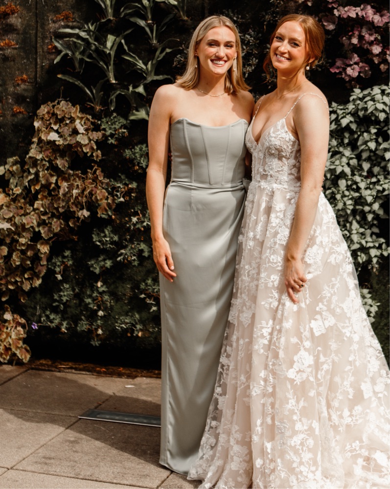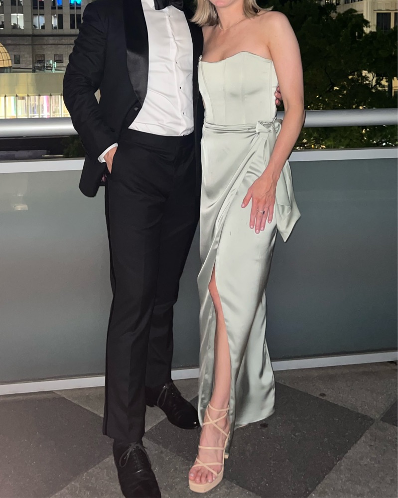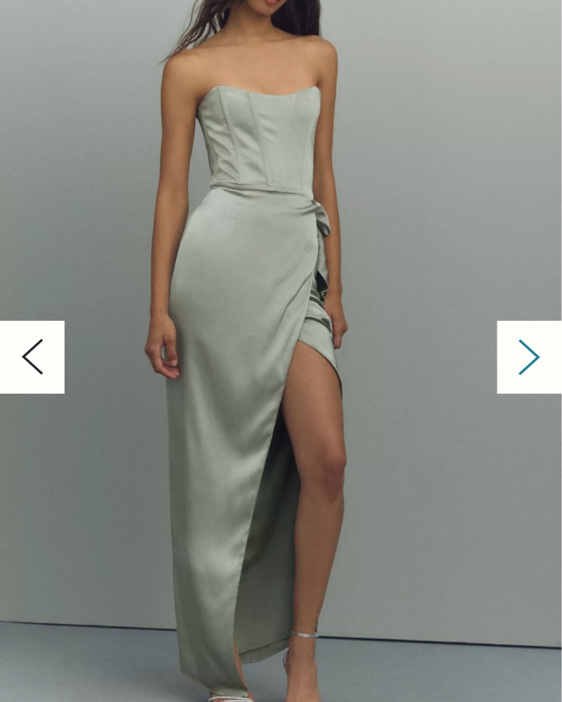 V Chapman June dress; sage green, size 6. Fits like a medium really true to size, I typically wear a medium/size 6. 34C, 135 lbs
