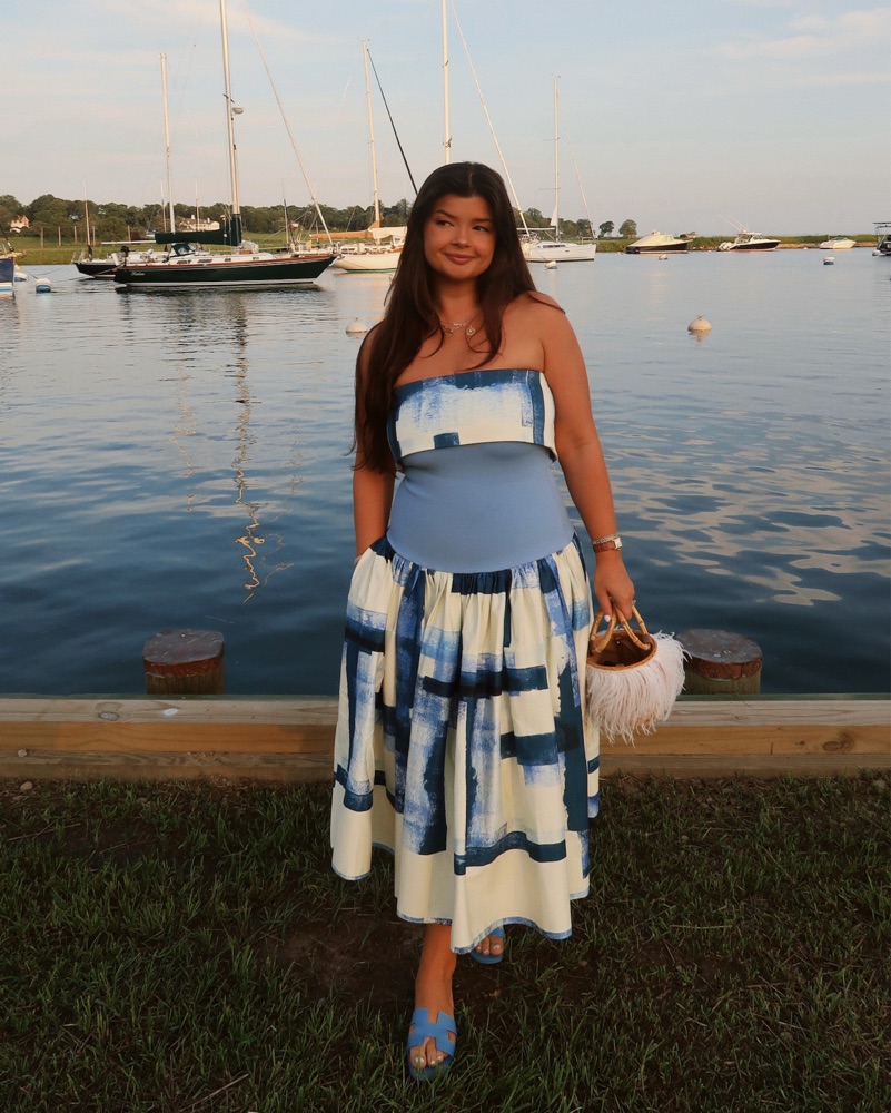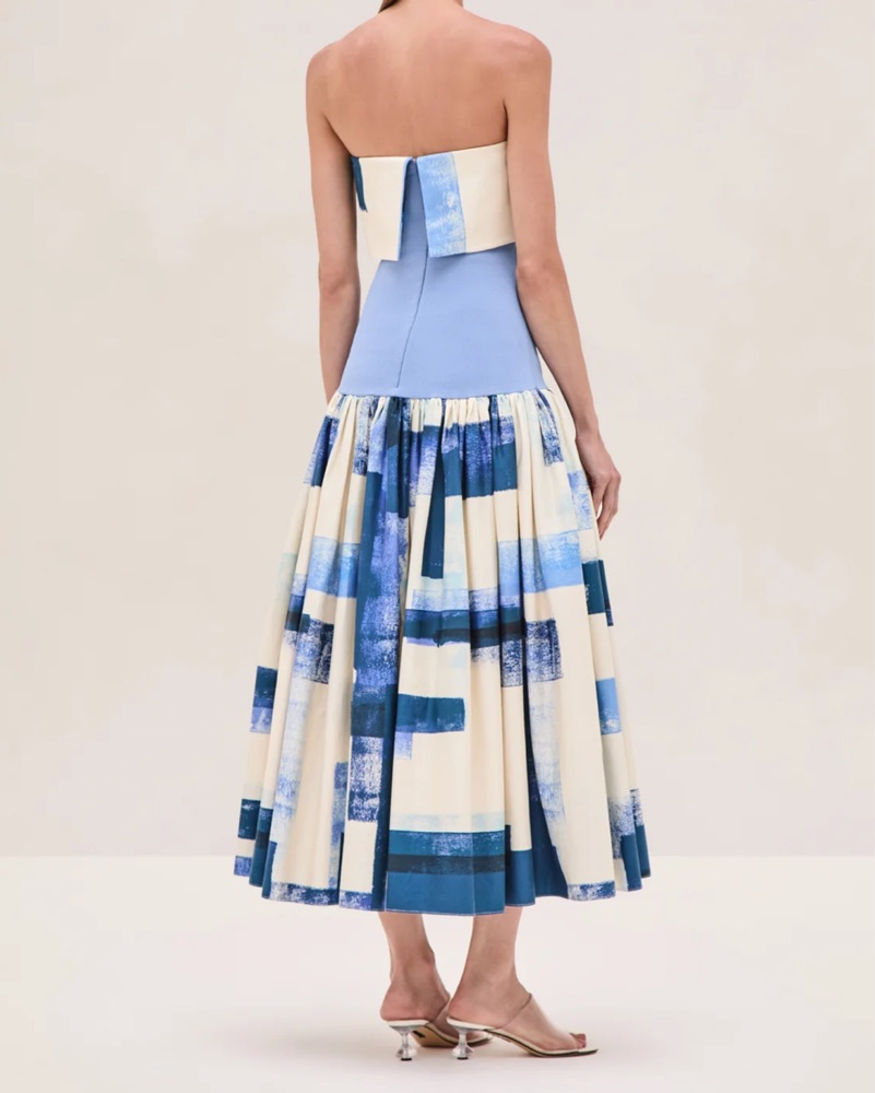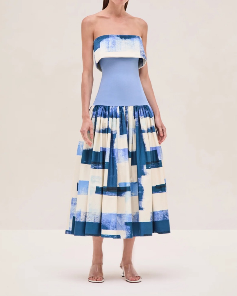 Alexis Blue and White Midi Dress