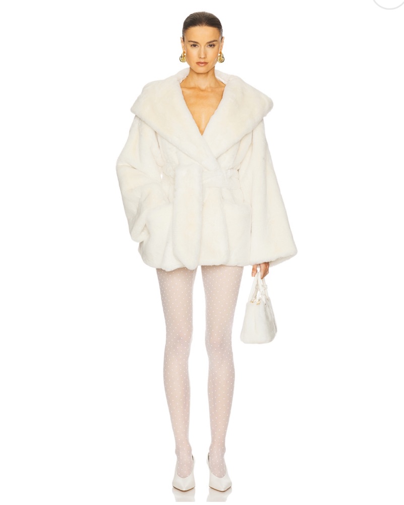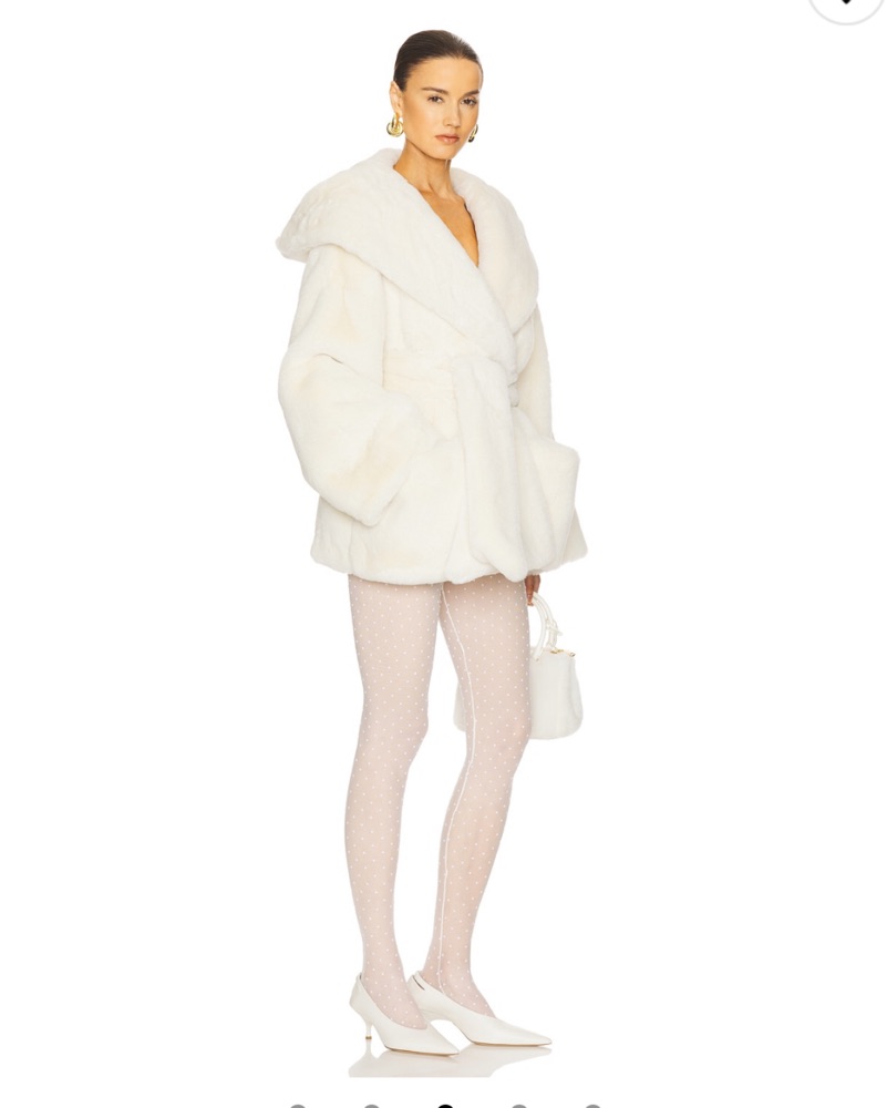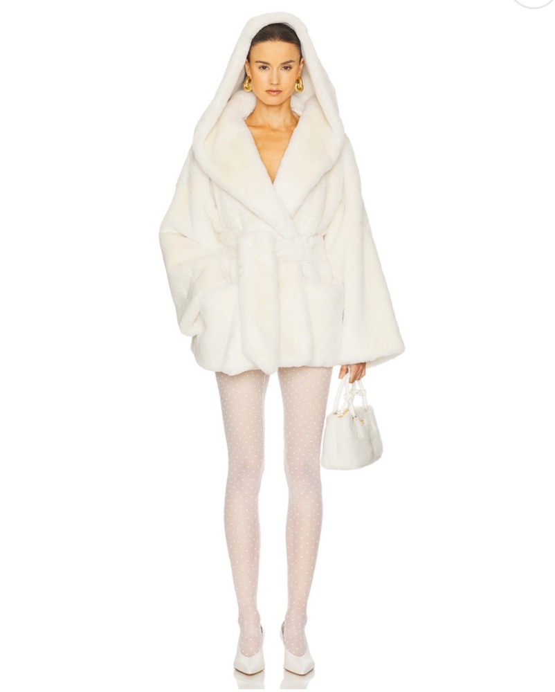 HESLA Hooded Fauz Fur Coat In White from revolve. Perfect for a ski trip or winter bachelorette outfit! Fur coat. Fur jacket. Aspen coats. Winter fashion.