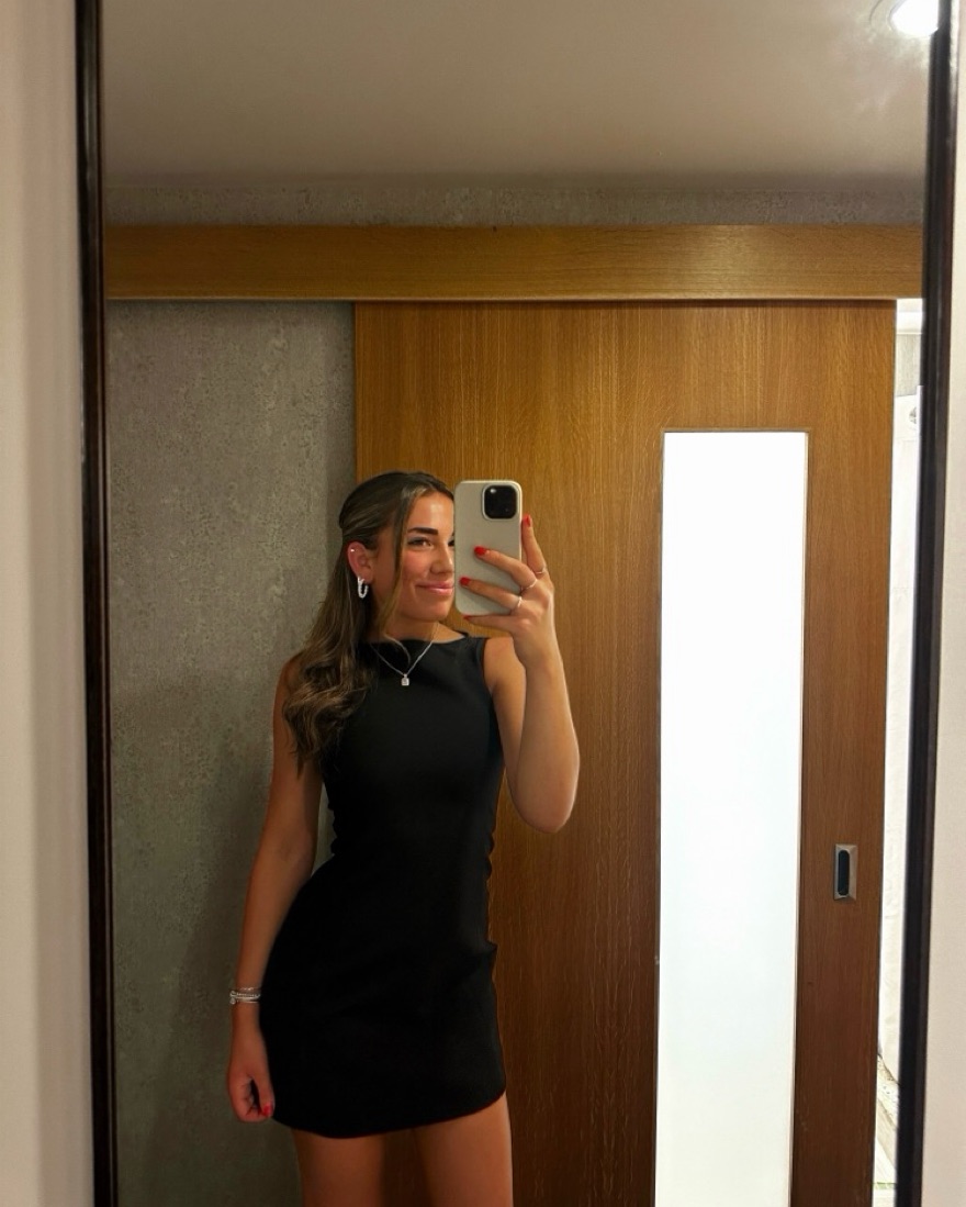 Perfect mini black dress - formal looking and can wear w a blazer/tights or on its own!