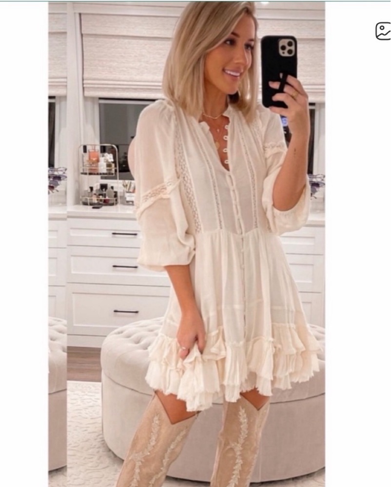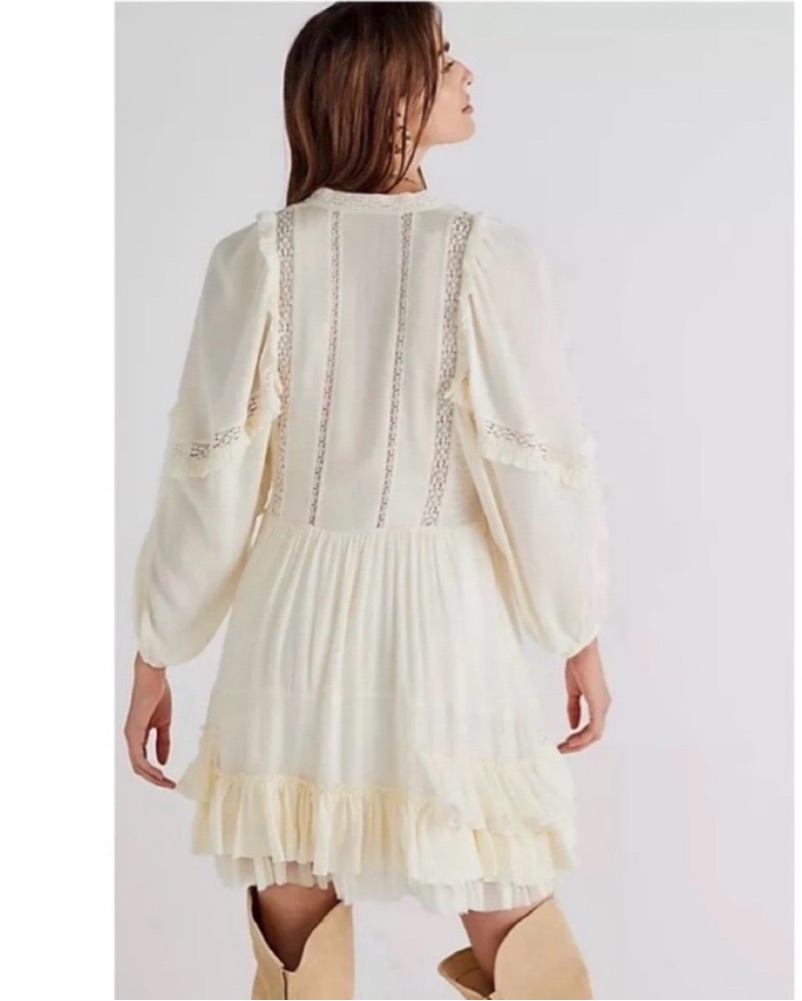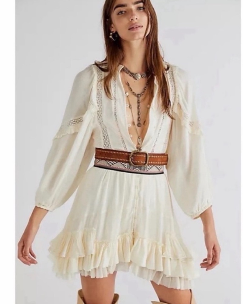 Free People Ruffle Mini Cream Dress
