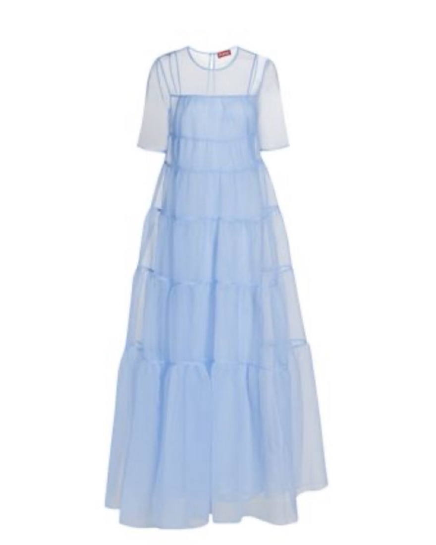 Hyacinth Tierd Organza Dress, Blue by Staud - Pickle