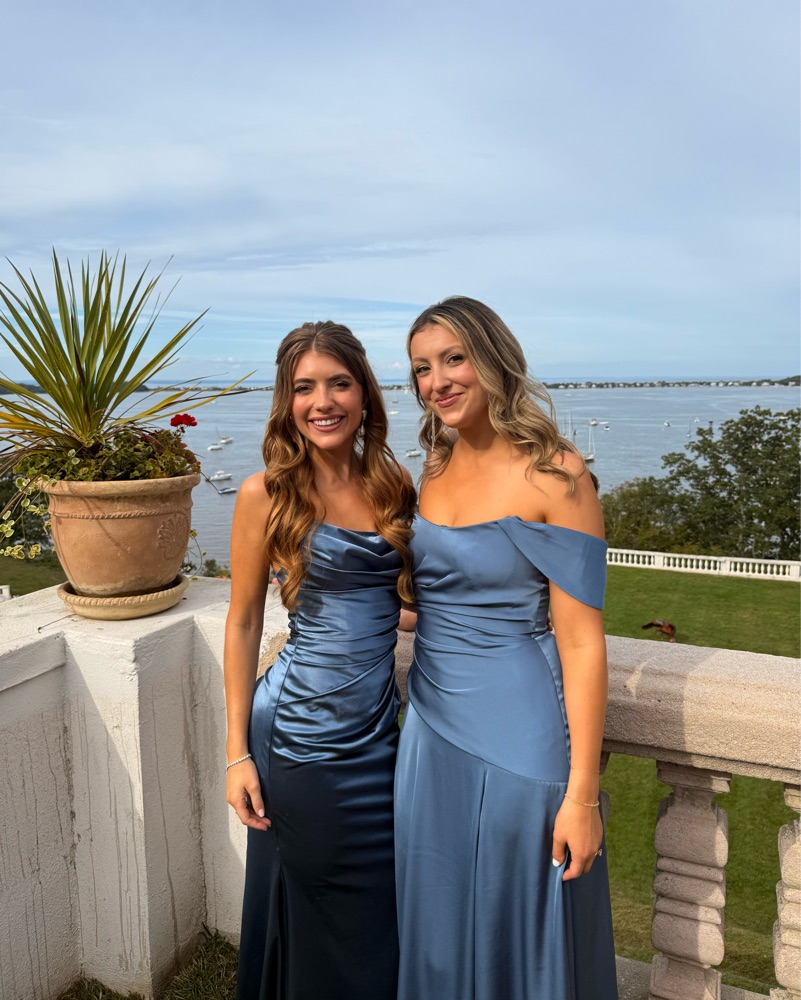 David Bridal Steel Blue Bridesmaid Dress