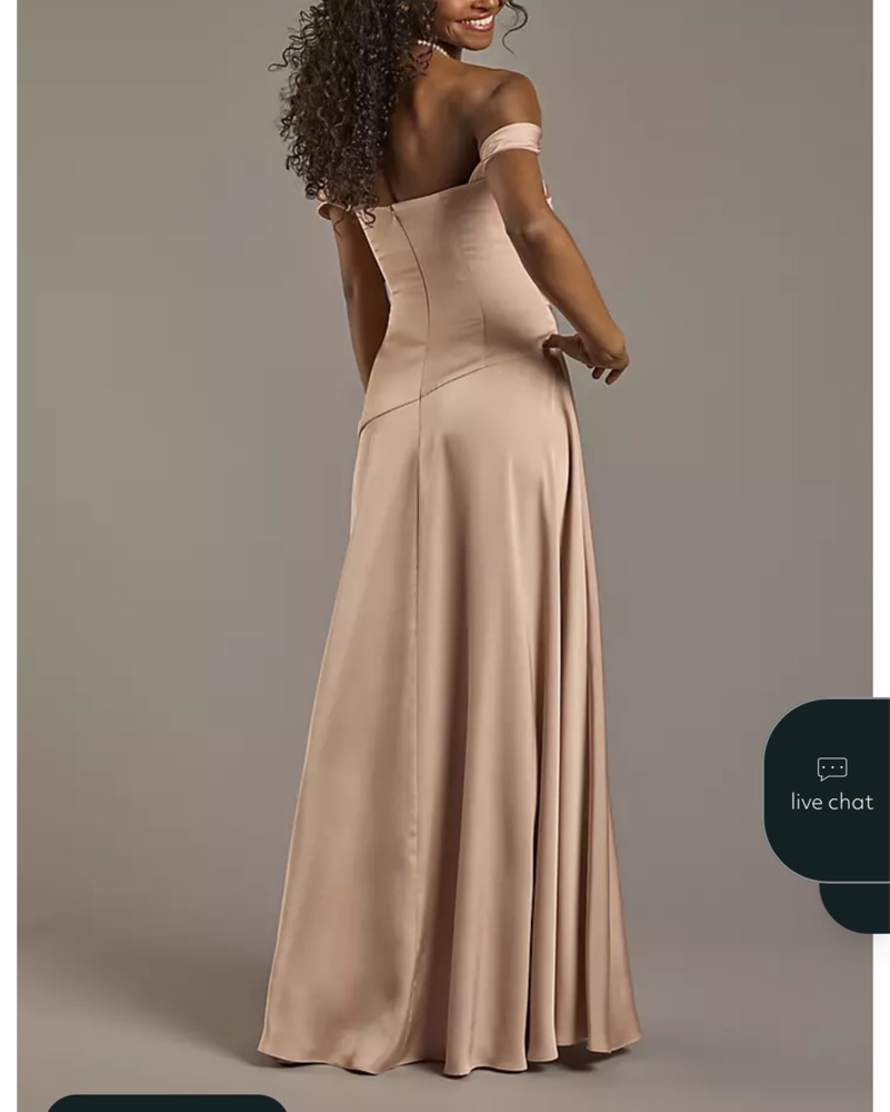GALINA SIGNATURE Matte Satin Off-the-Shoulder Drop Waist Dress STYLE# GS290275 Very comfy! I got it dry cleaned last time I wore!