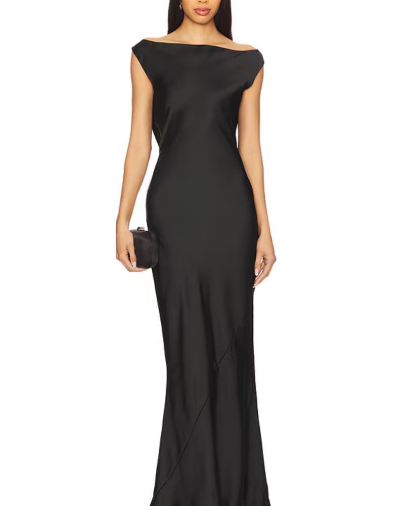 Norma Kamali Black Satin Gown