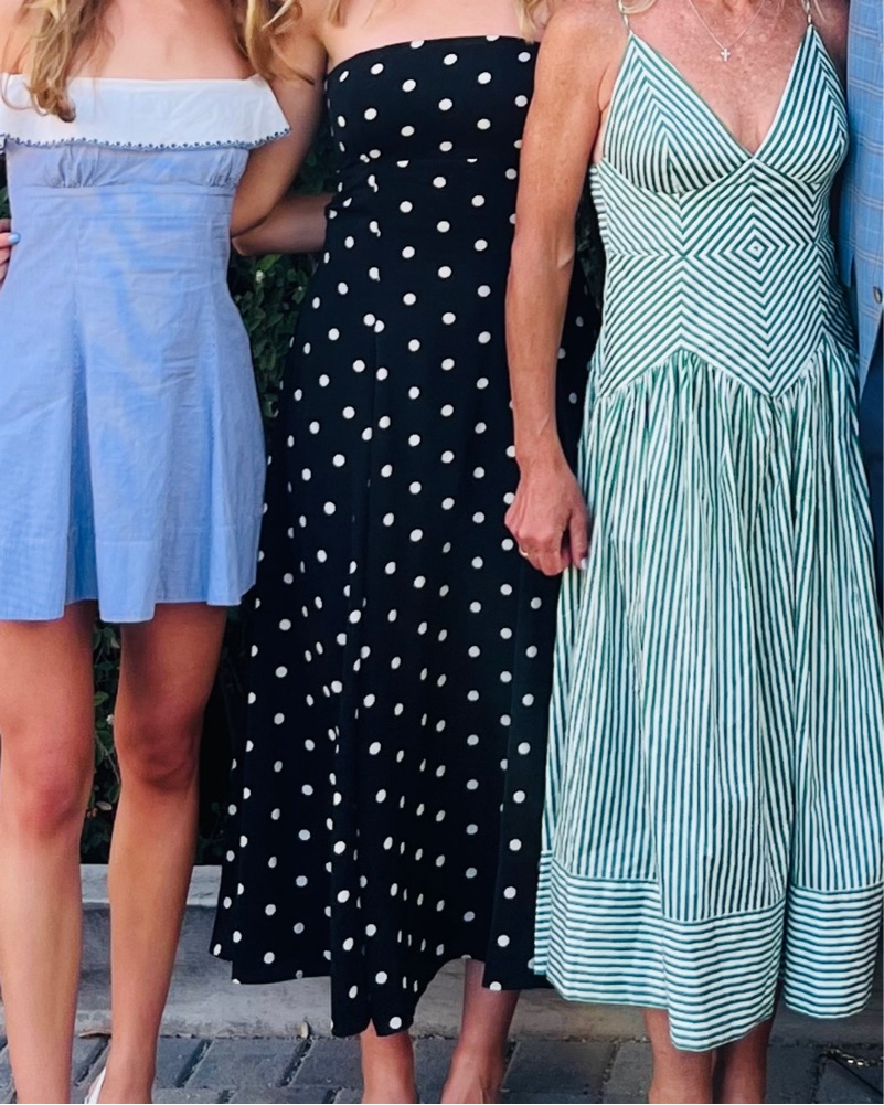 This elegant polka dot midi dress is perfect for a summer soiree or garden party. The flattering silhouette and on-trend print make it a versatile piece for any occasion. Size: Small / Tall (I’m 5’9) but could totally work for someone shorter esp with heels.