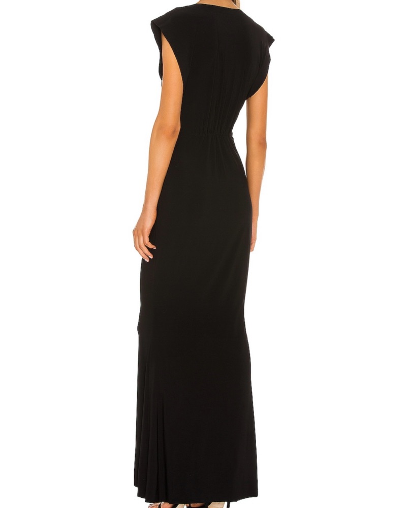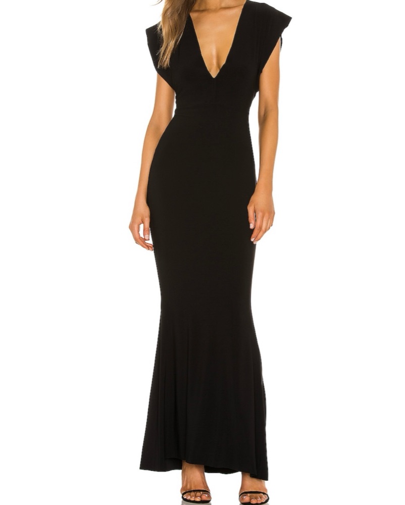 Beautiful black gown by Norma Kamali from Revolve. Have worn to black tie wedding and formal attire events. It’s so flattering!
