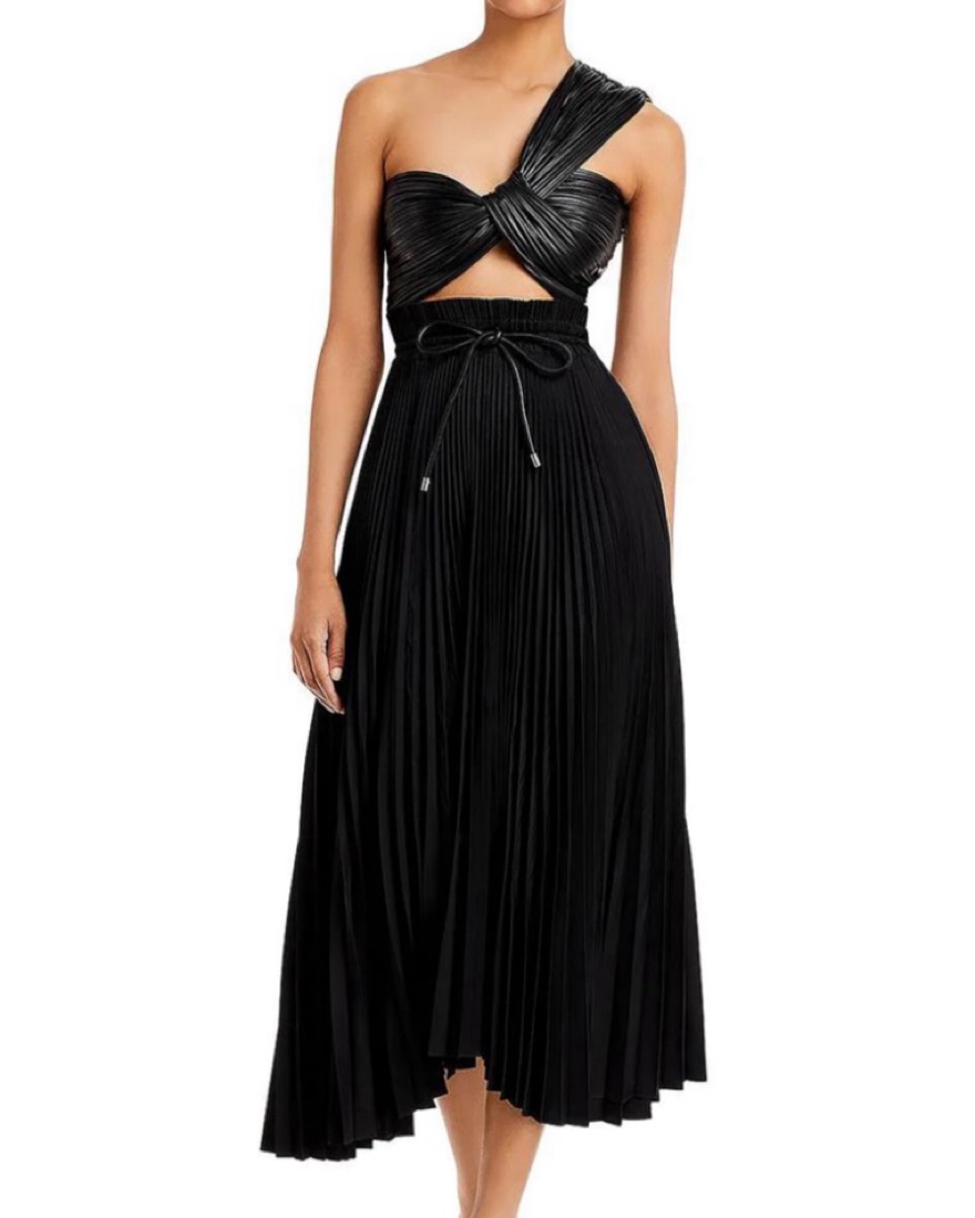 ALC Addie Womens Leather Pleated Midi by ALC - Pickle