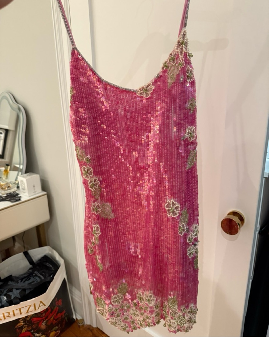 Pink sequin dress perfect for a birthday or event - worn once! Fits like a medium. Dress has a few sequins missing from wear. See last two pictures for condition!