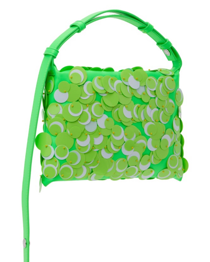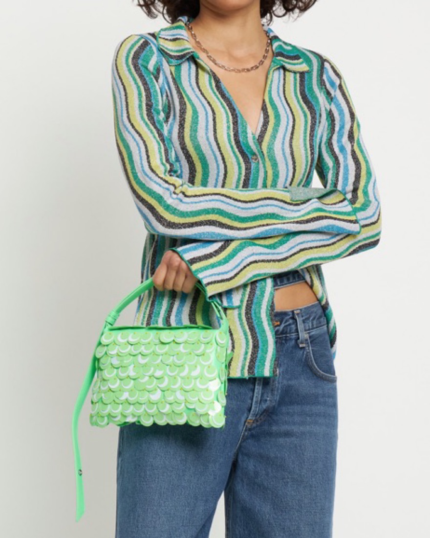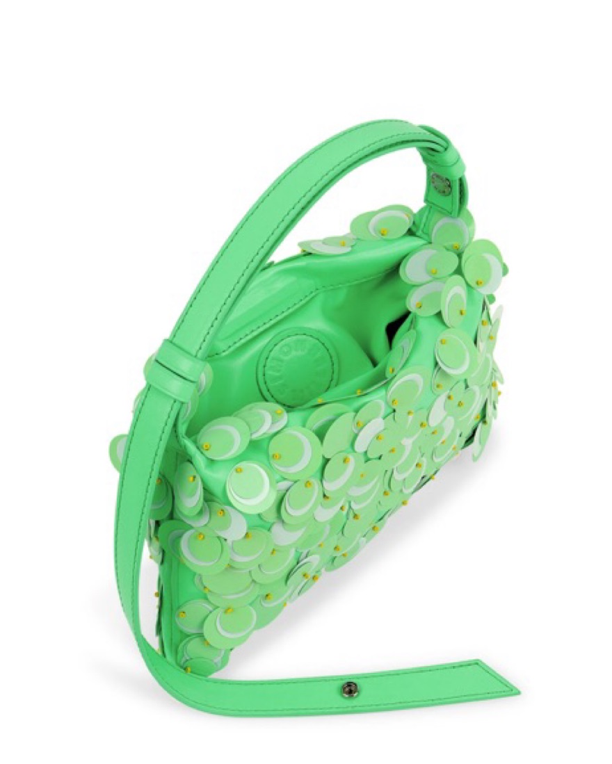 Cute green “sequined” bag from Simon Miller, adjustable strap. Perfect statement piece, costume piece, or St Patricks day!