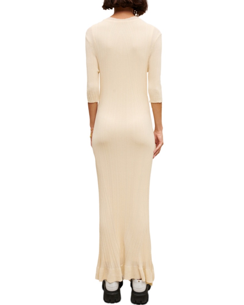Maje Rooly Ruffle Hem Knit Maxi Dress in Natural (cream color). Knit material with detachable lining. Size 34 / US 0 / XS
