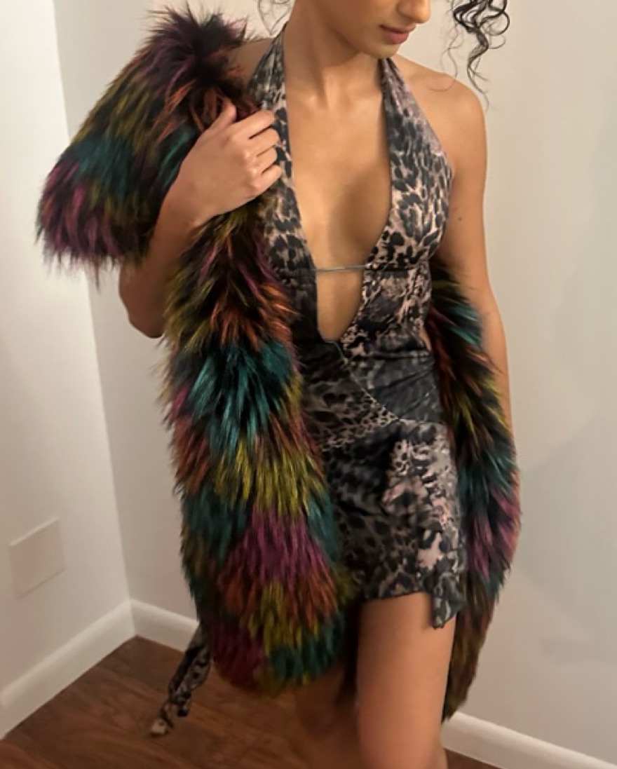 Super soft and sexy animal print dress. Backless with halter top and very flowy, perfect for a night out, festival, or party! XS but could fit an S
