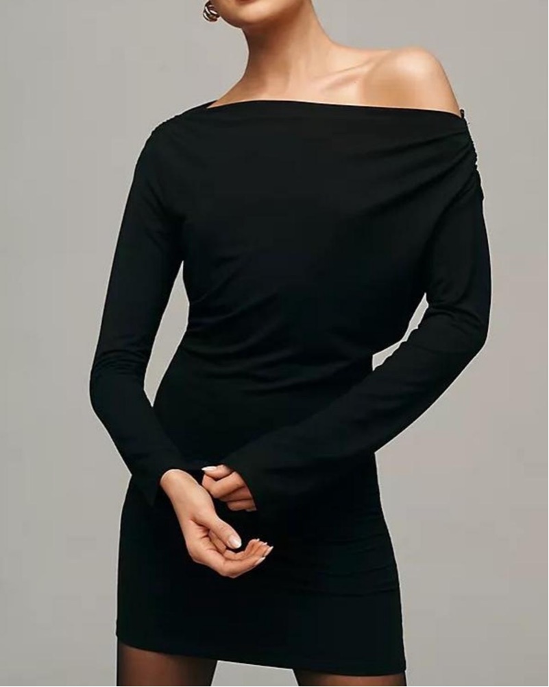 This versatile black dress is perfect for a night out or a special occasion. The off-the-shoulder design and figure-flattering silhouette create a sophisticated and alluring look.
