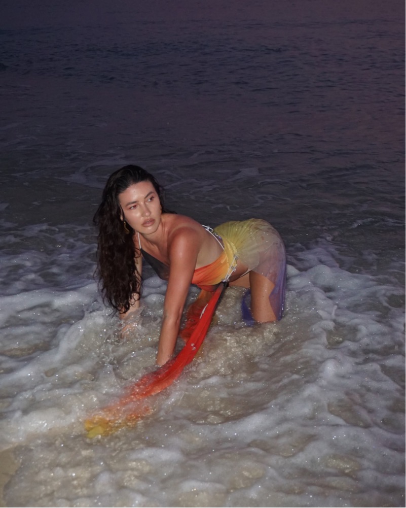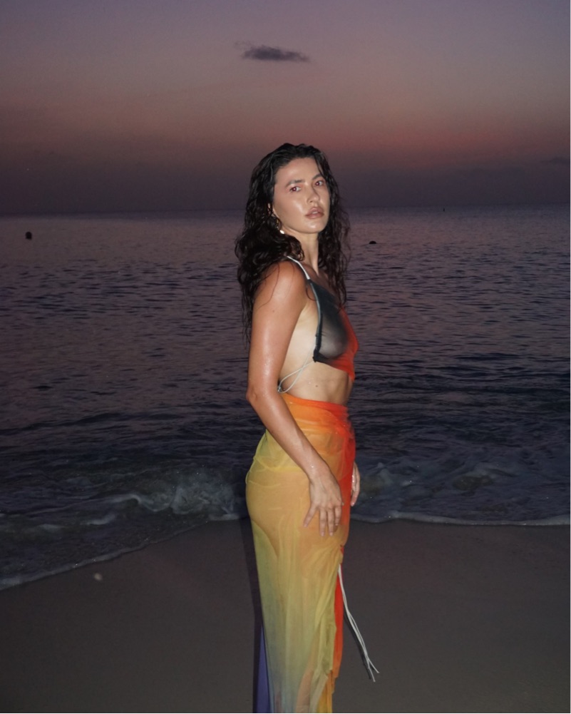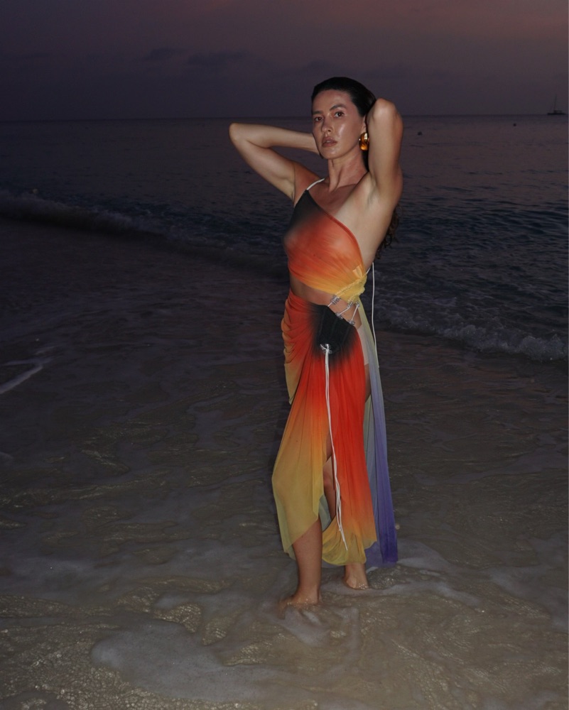 Such an incredible dress from Polish brand, Fal-Ash. The dress is sheer mesh with ombré coloring. The straps are a stretchy bungee material so the dress can stretch to meet your styling needs. Travels well for your vacations!
