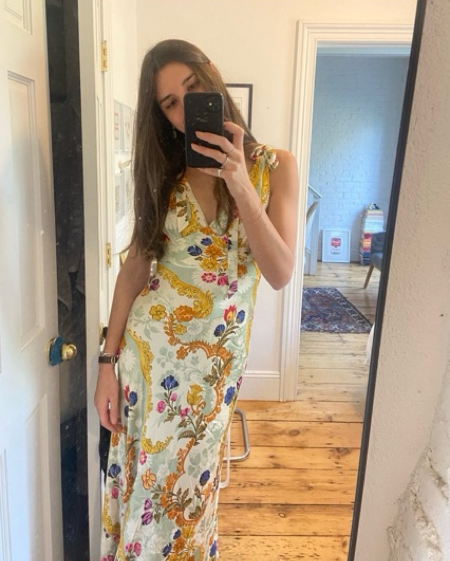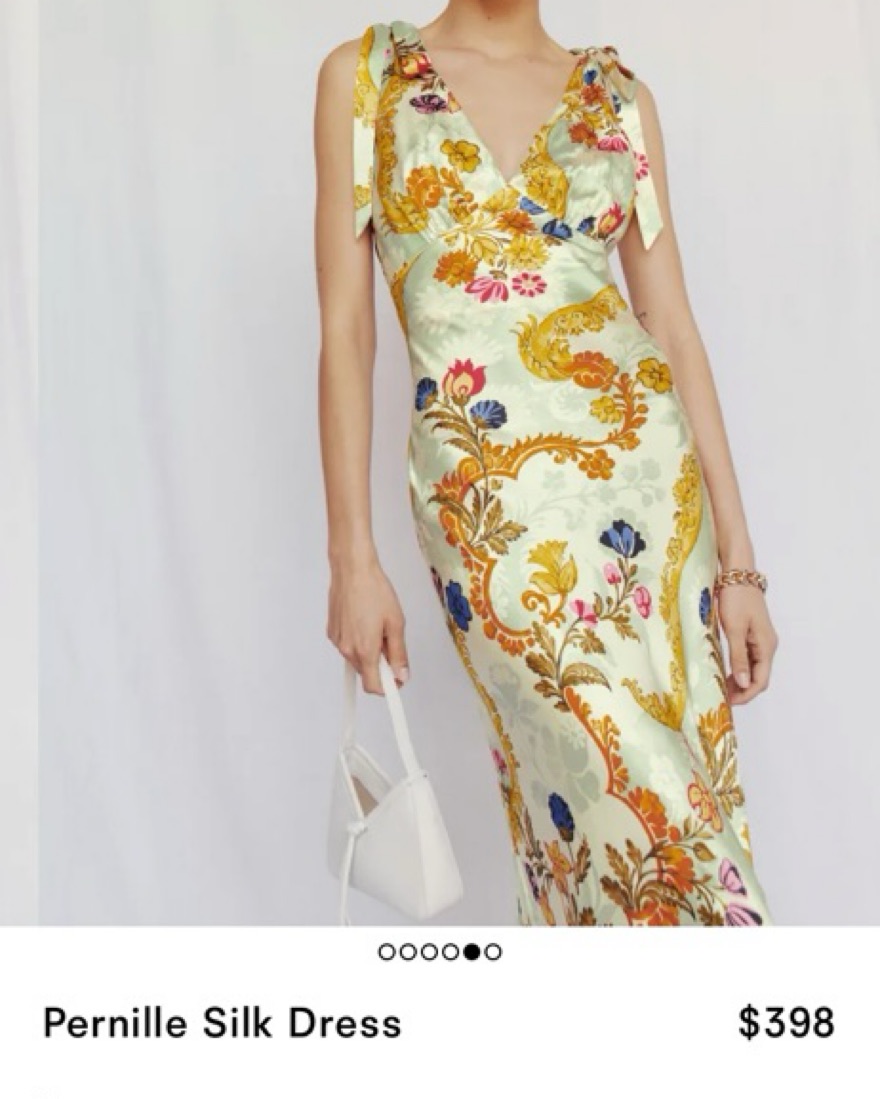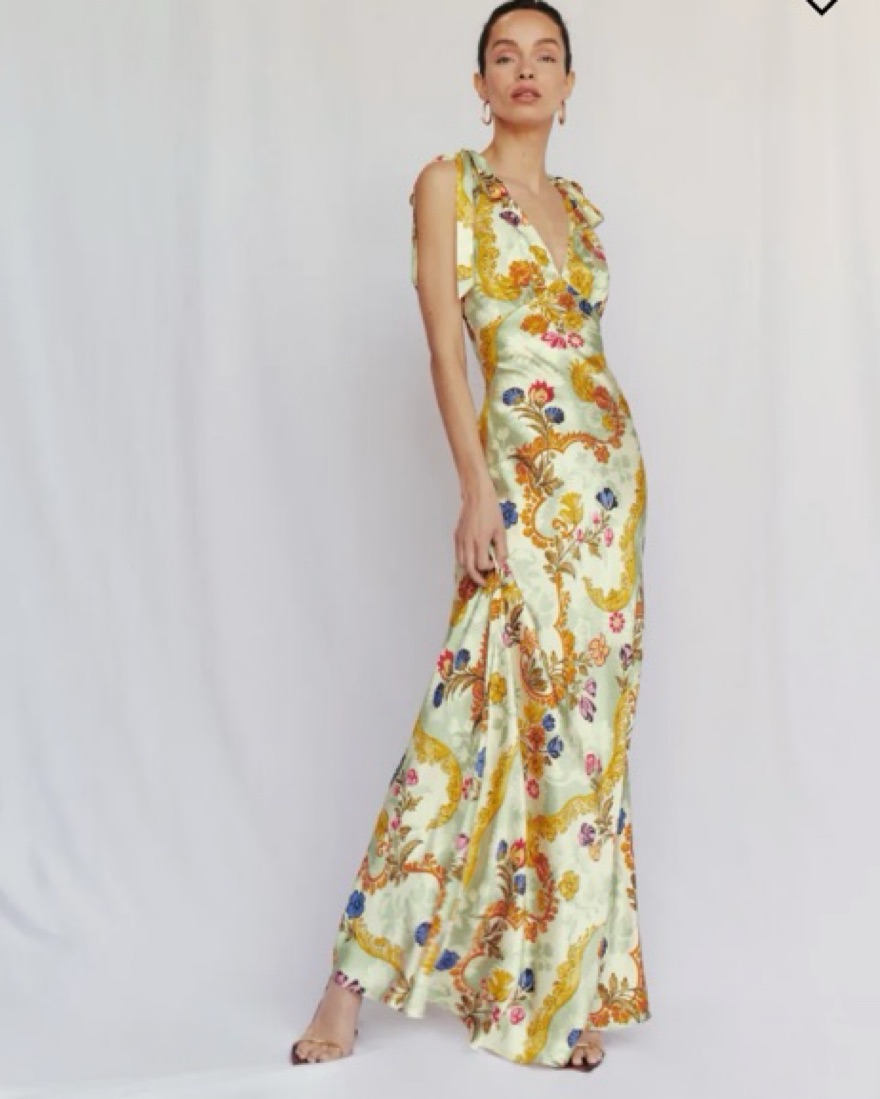 Reformation pernille silk dress, size small (fits 2/4). I am 5’8” and wore this with heels, it’s long.