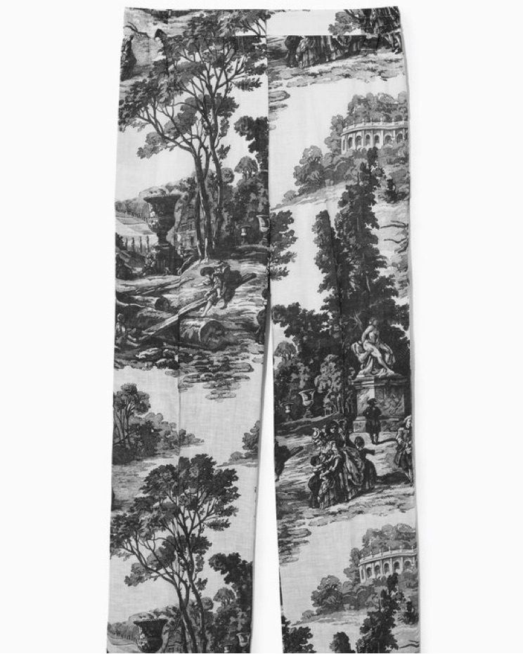 These trousers are decorated with an intricate French toile artwork that dates back to the 19th century; keep the print in focus by pairing them with simple blouses and tops. They're crafted from pure linen that's perfect for balmier days and shaped for a neat straight-leg fit.
