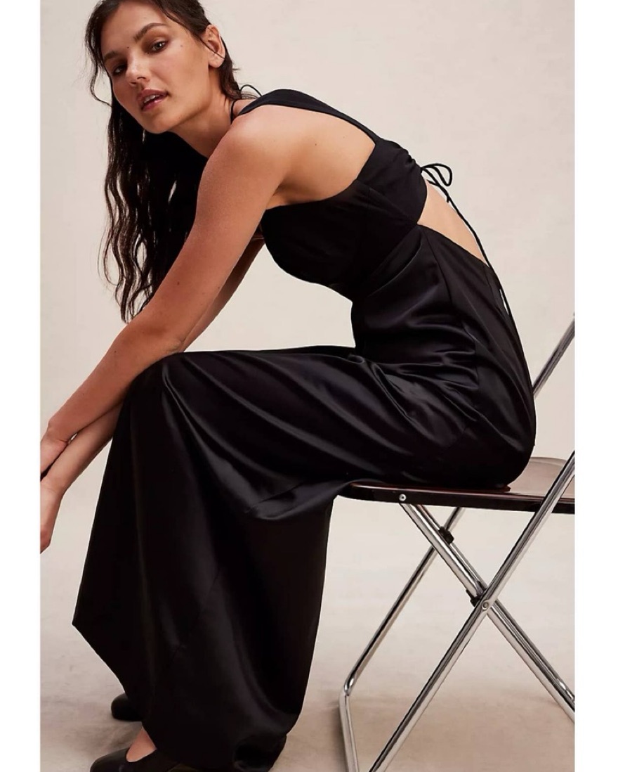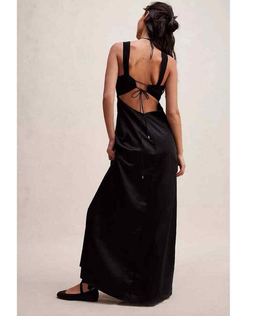Elegant Black Satin Maxi Dress by Free People - Pickle