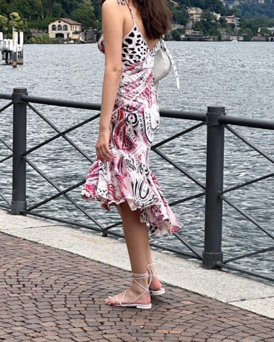 Vintage Y2K Roberto Cavalli “Just Cavalli” silk midi dress with leopard and paisley prints, asymmetrical seam details. Tag says Medium but fits more like a small (size 4), a tiny bit of stretch. Sex And The City vibes. Good, vintage condition.