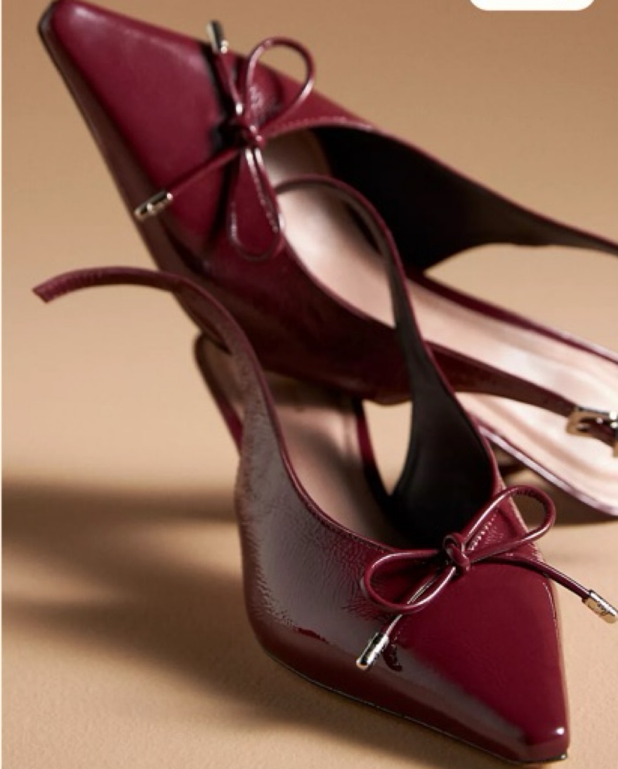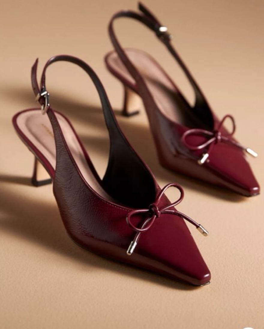 These stunning burgundy slingback heels are the perfect addition to any chic outfit. Crafted with a sleek pointed toe and a stylish bow detail, they'll elevate your look with effortless sophistication.