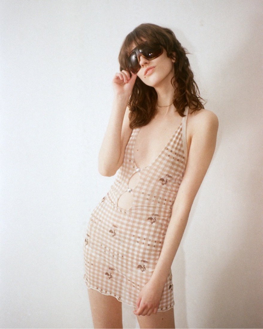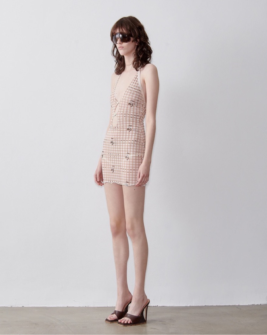 So perfect for vacay. You will be looking 'so fetch' in our brand new Gretchen mini dress. Crafted from super soft power mesh, featuring our dolphin poolside emblem. Signature heart encrusted cut outs, finished with a double layered lettuce hem and built in short lining