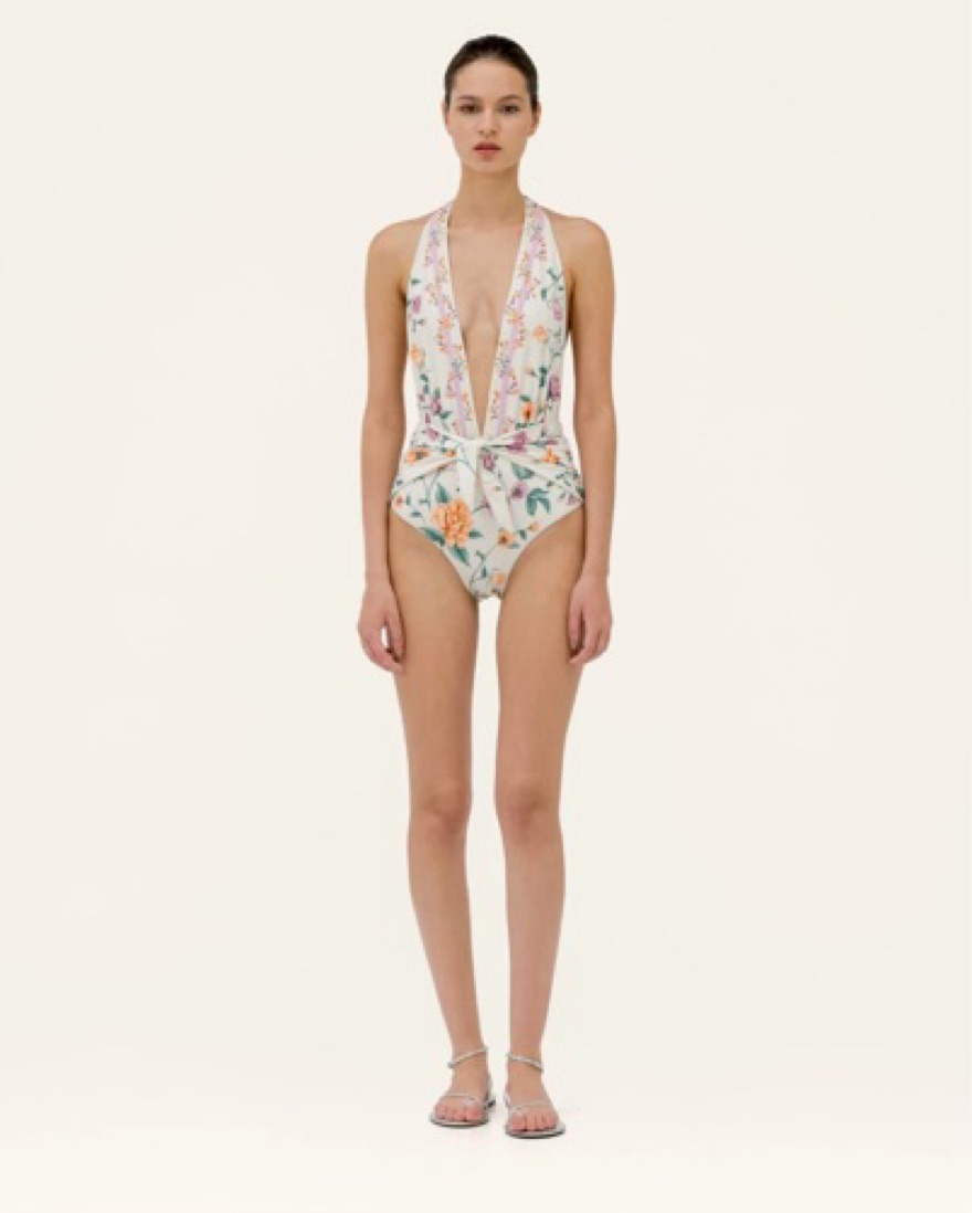 Agua by Agua Bendita one piece swim suit, paired with the matching sarong. Can wear as a dress for brunch, beach club, or pool/beach side. So cute for a european or tropical vacatjon. Swim suit is sold out everywhere! Similar to Zimmermann, Farm Rio