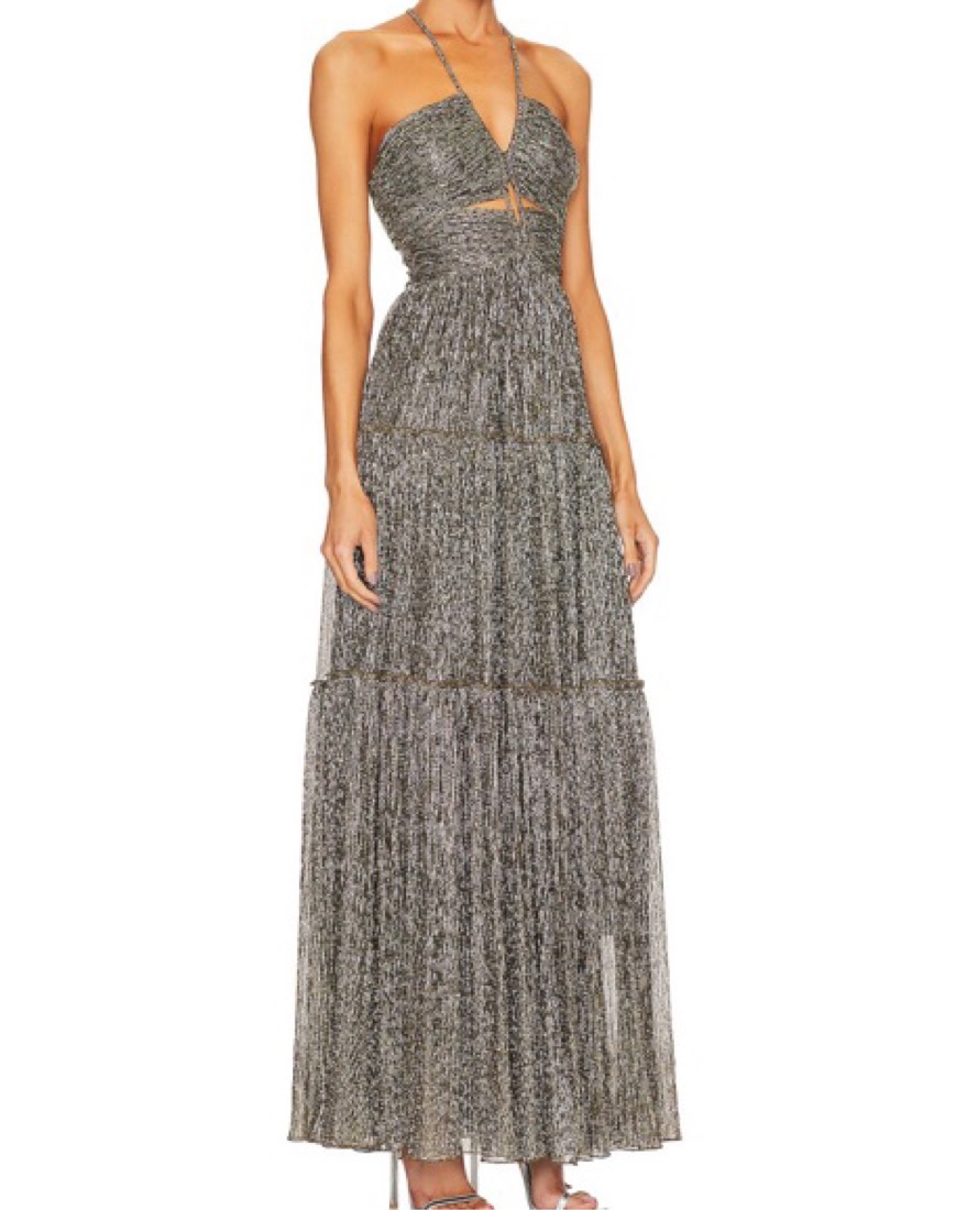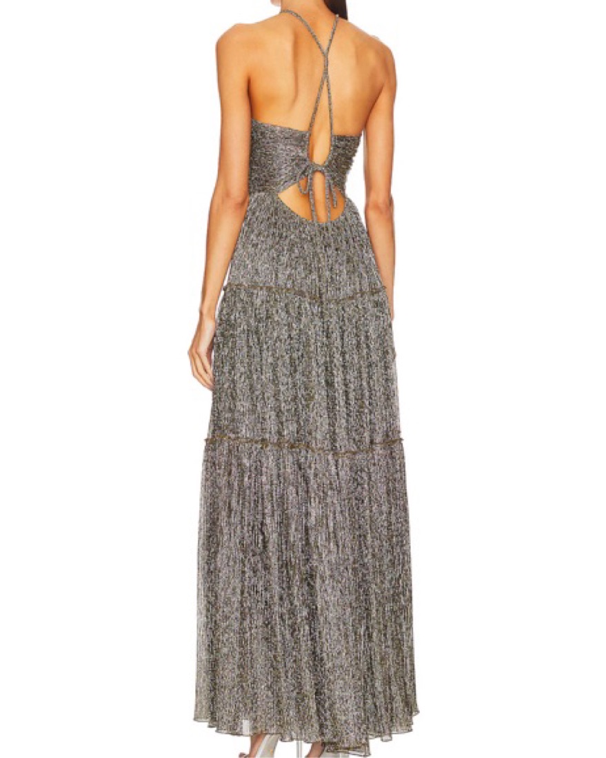 Metallic threading throughout. Absolutely gorgeous- worn once to a black tie gala