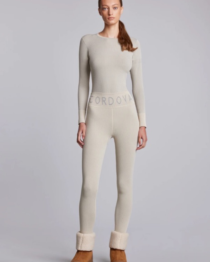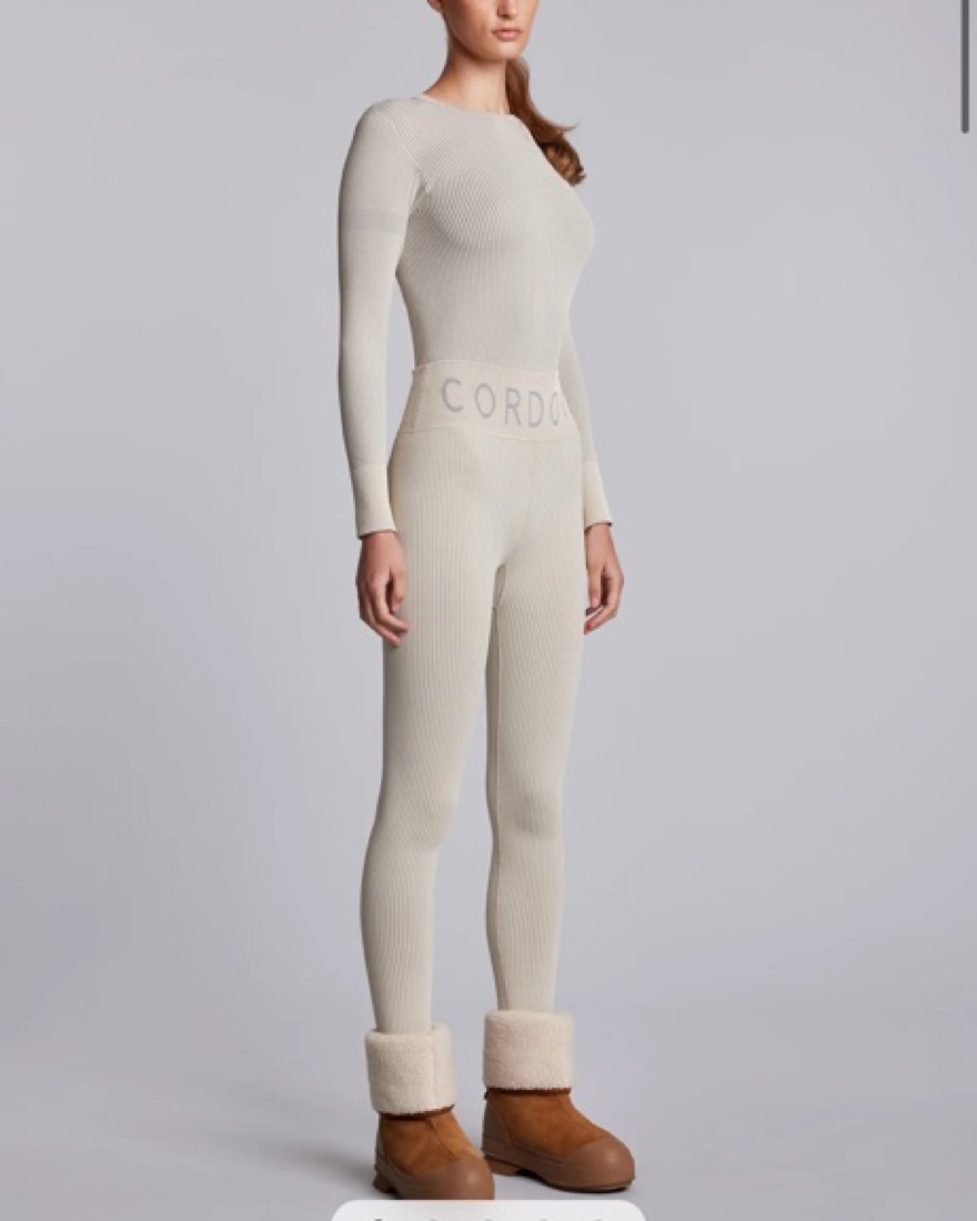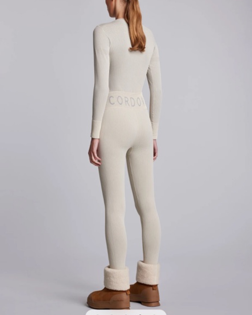 Rental comes with matching leggins and top. Cream/ grey ribbed. Size xs/s. For reference im a size 4 in lululemon legging and 4-6 in lululemon longsleeve tops. Tags: Ski, apres ski, base layer, aspen, switzerland, mountains, skiing