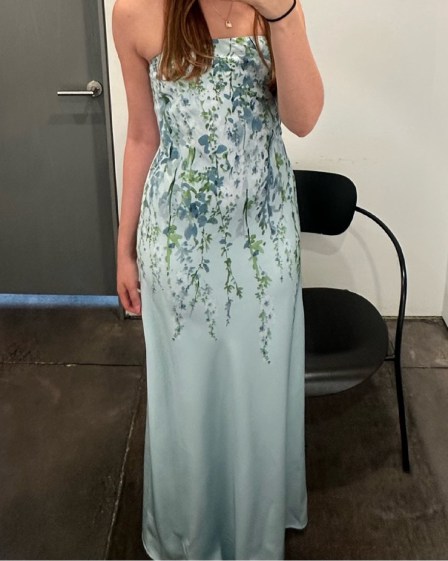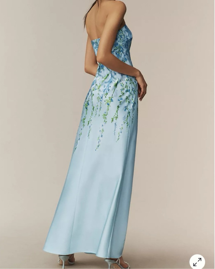 Strapless blue formal dress from Anthropology. Purchased medium but has been tailored to fit like a Small.
