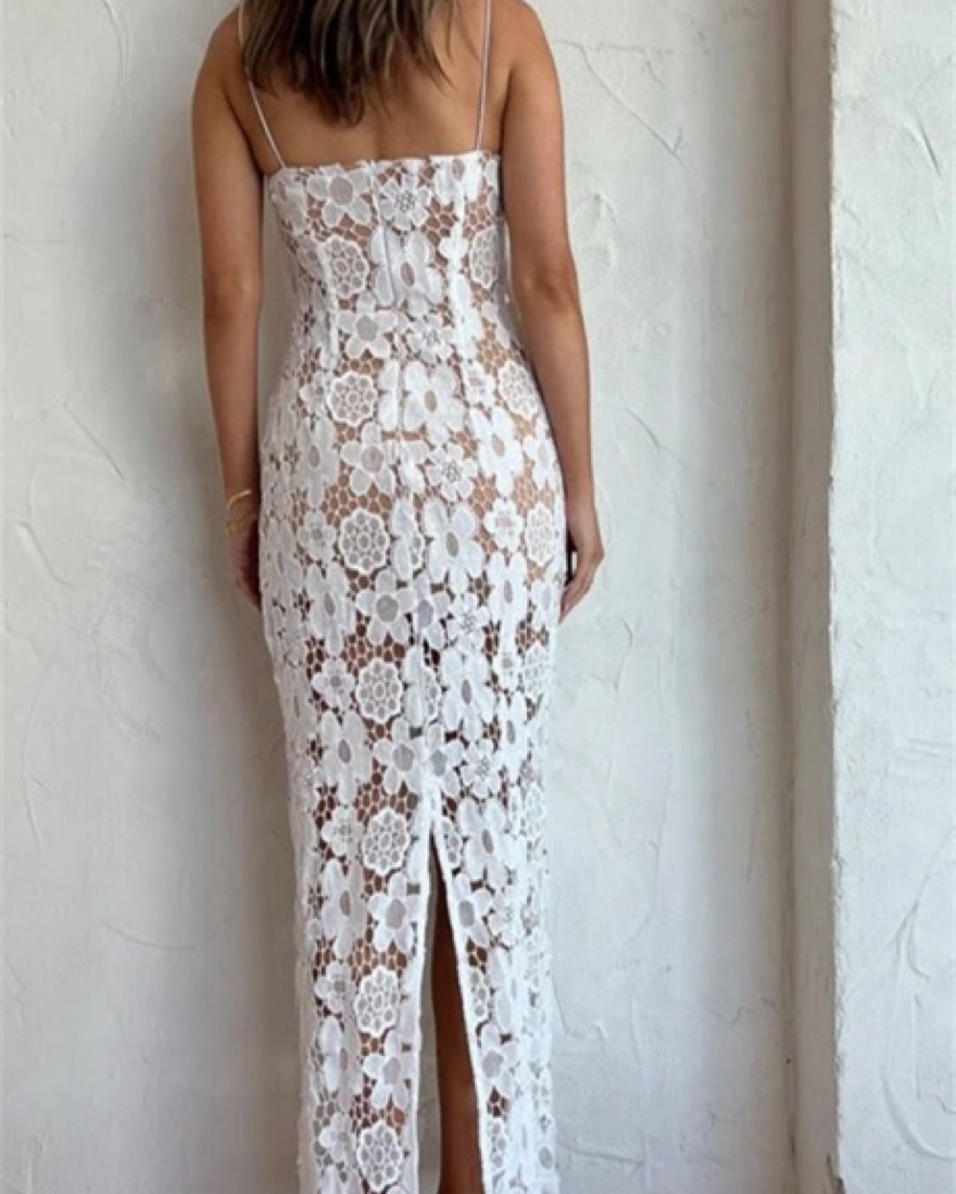 White Crochet Lace Maxi Dress