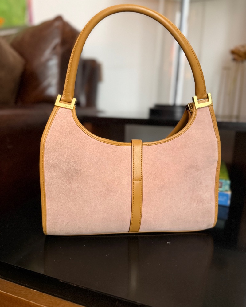 Gorg pink suede vintage gucci bag - love her so much and want her to have her moment in the sun! please be careful wearing with dark denim (it can rub off on the light suede) 👜