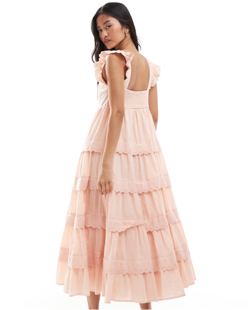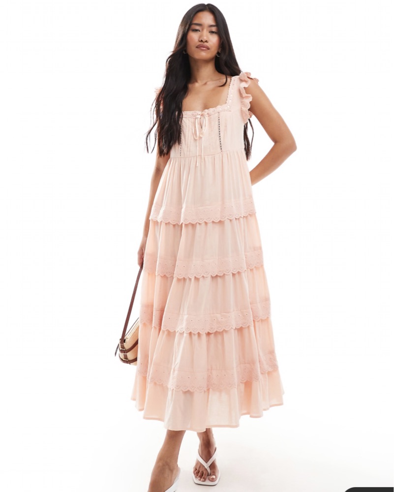 Never worn! Miss Selfridge lace broderie trim babydoll maxi dress in peache