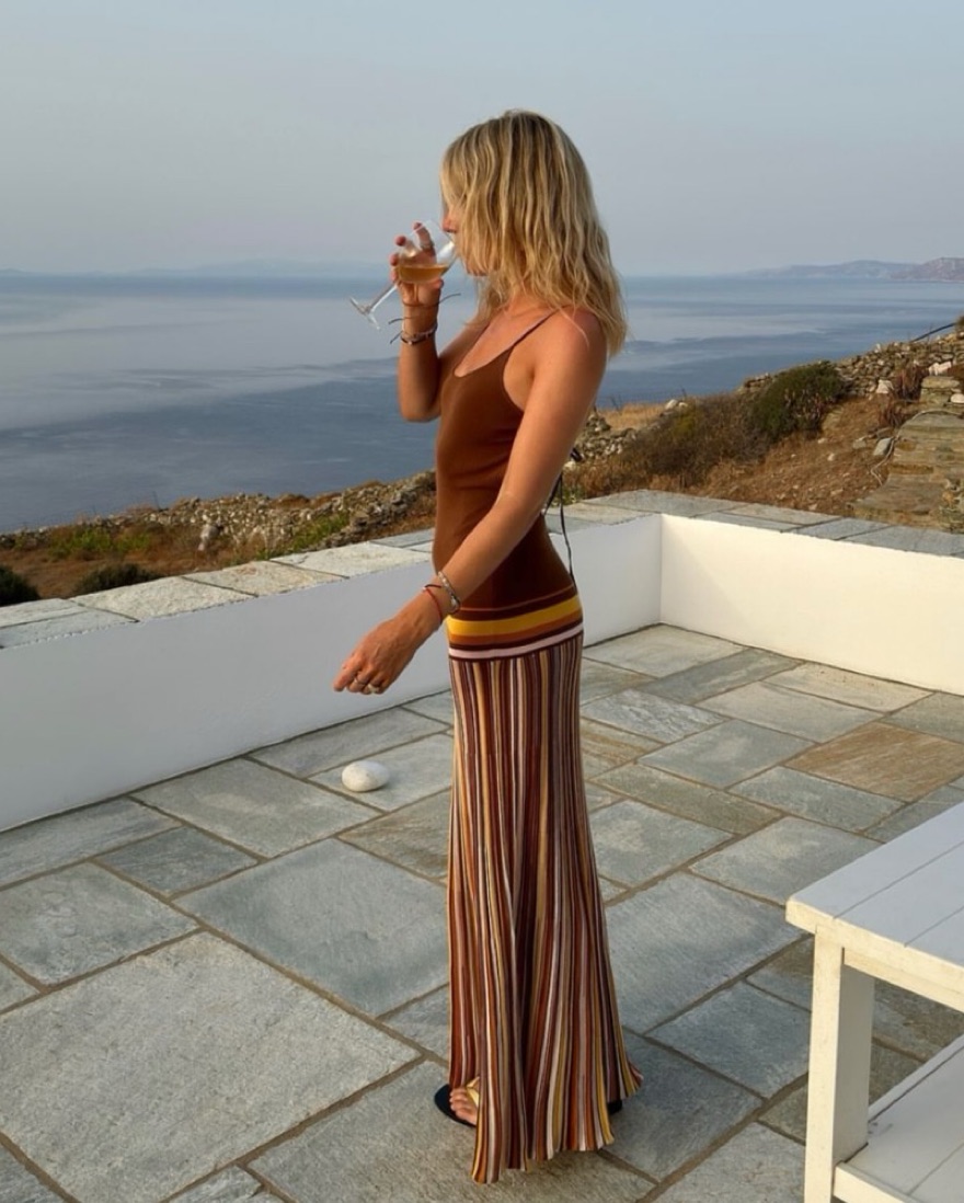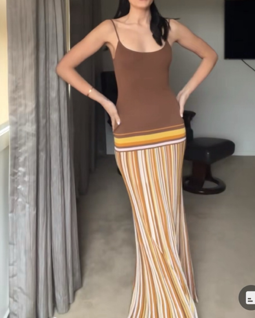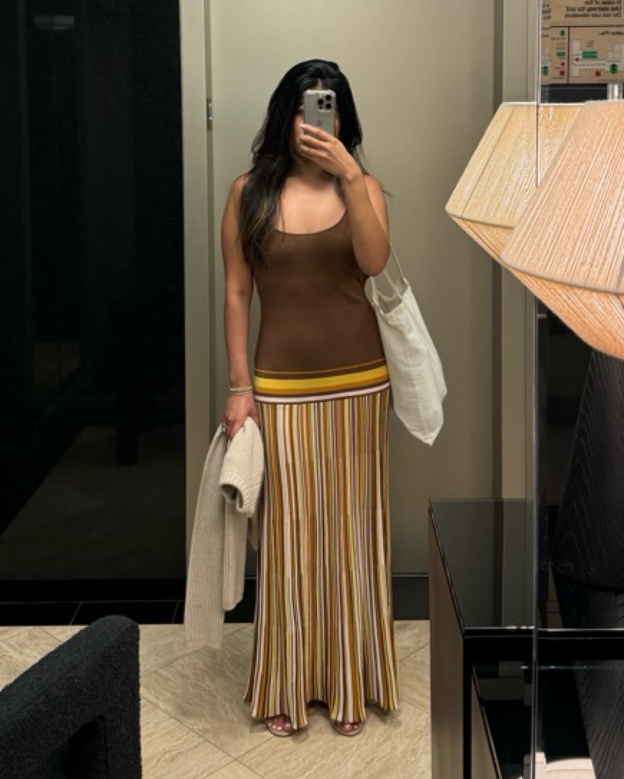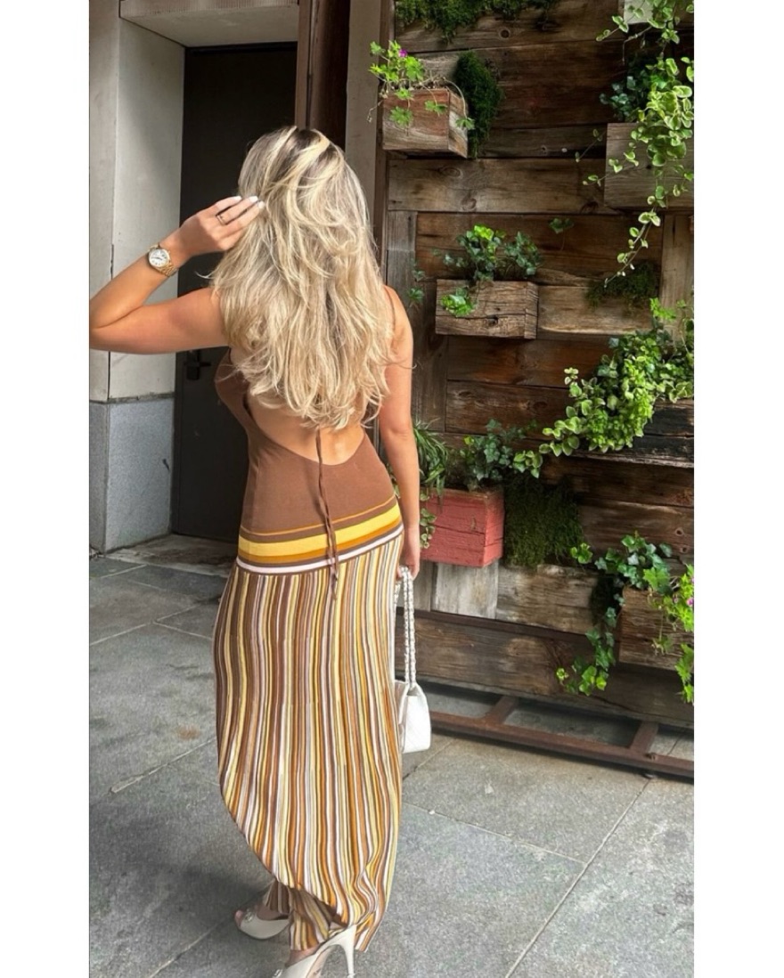 Knit maxi dress in the color cocoa. Adjustable straps that tie in the back. Size S / US 4.