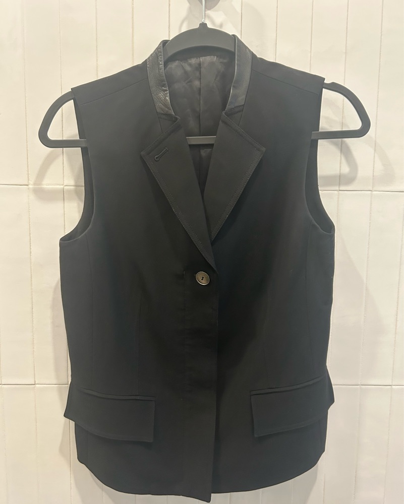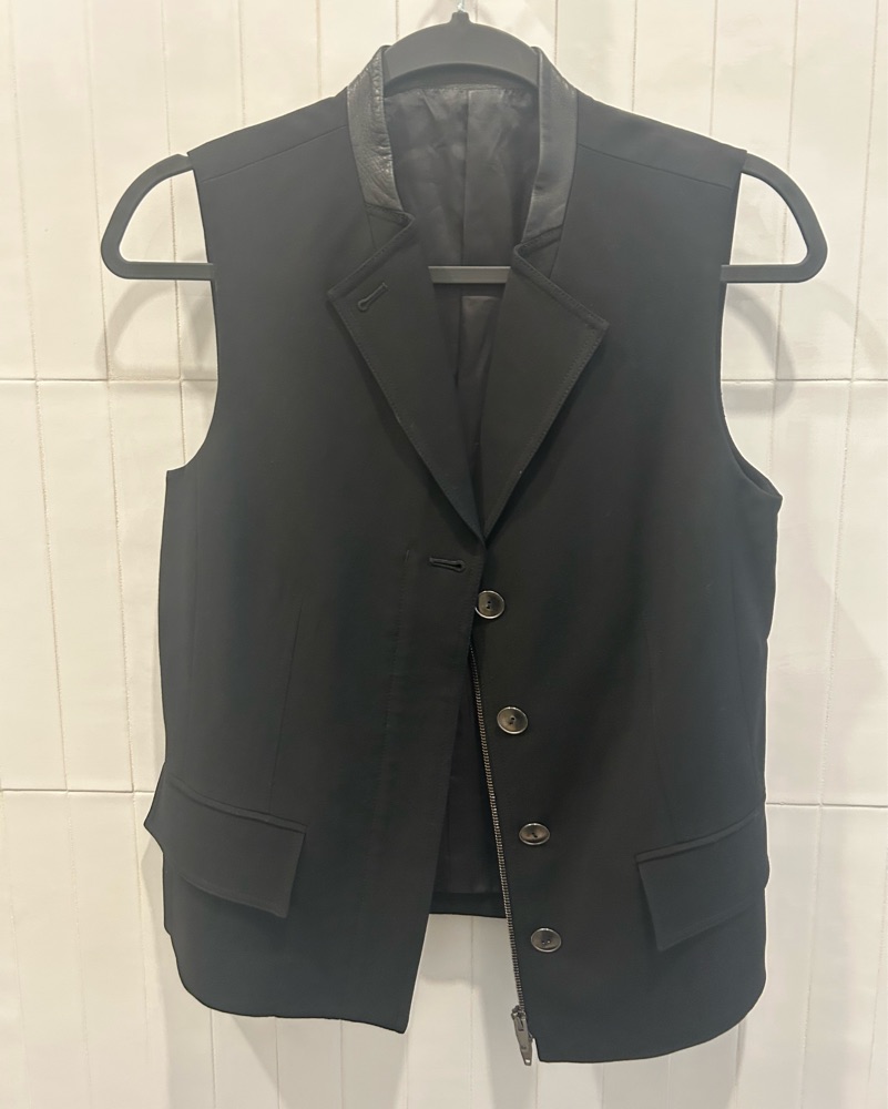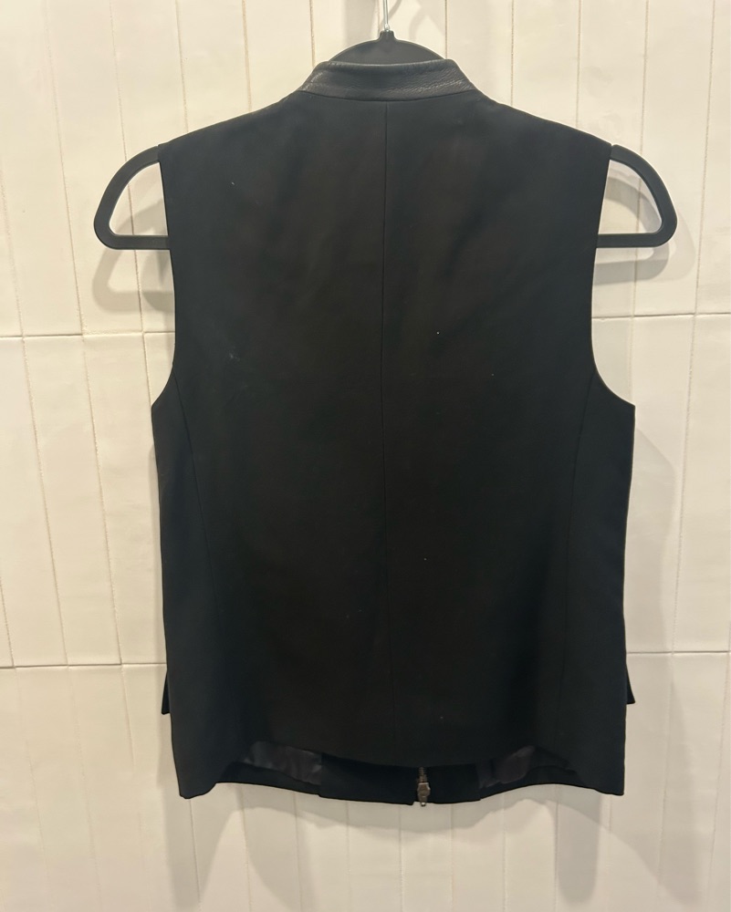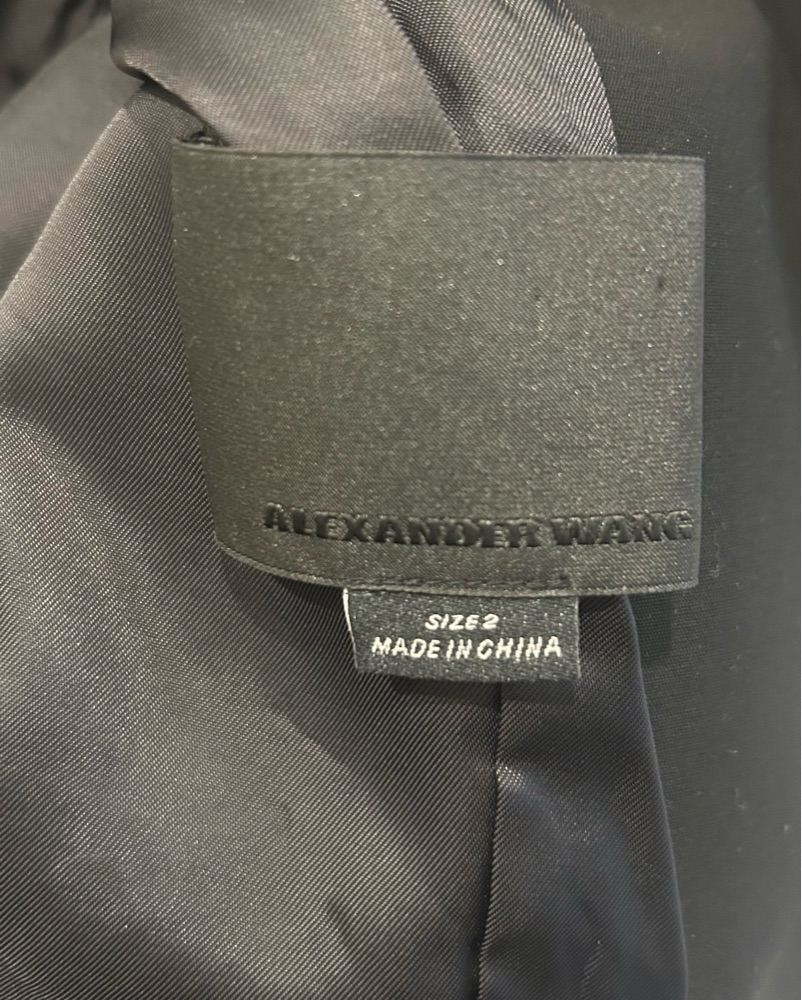 Alexander Wang best with leather collar detail. Wear open or closed with zipper and button detail. Size 2. A classic layering piece!